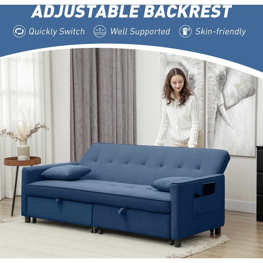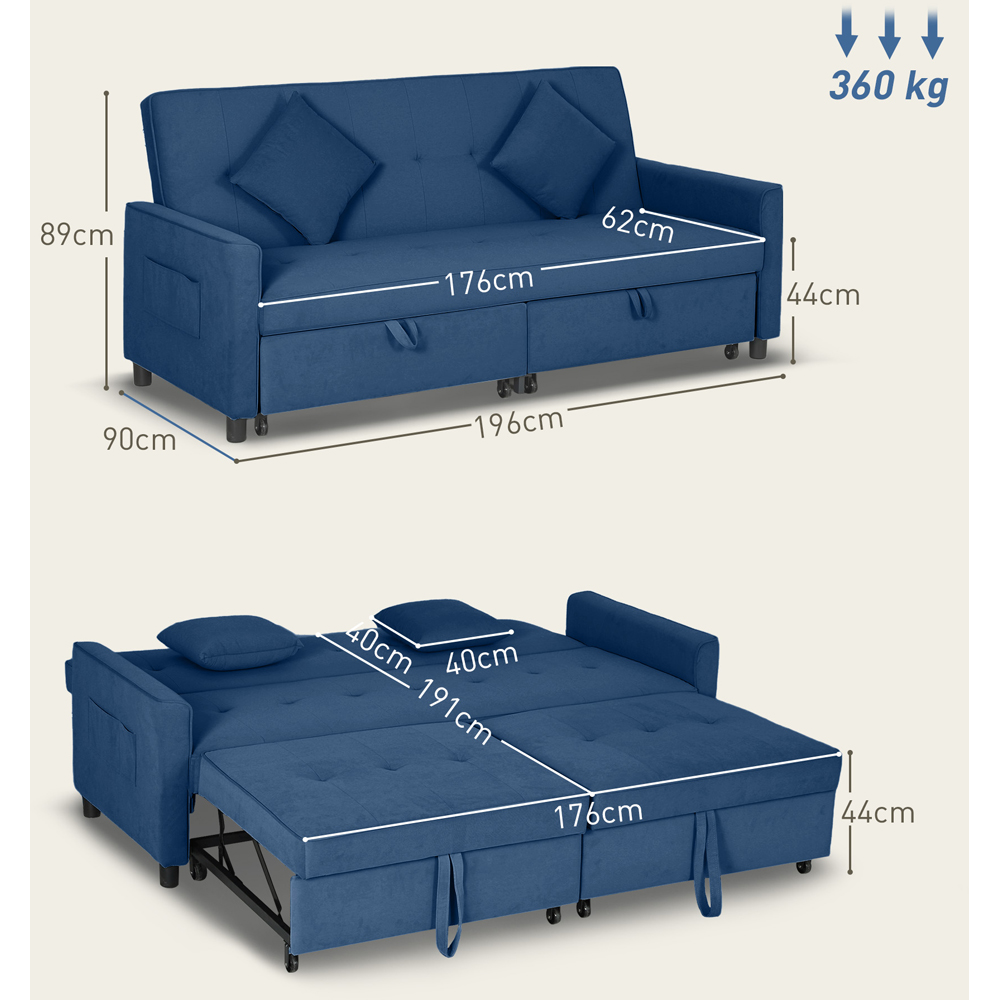 This HOMCOM sofa bed is a luxurious addition to every space, which keeps you comfortable from day to night. The click-clack movement, with wheels and pull handles makes moving from the three-seater sofa into a bed effortless. Filled with thick high-density padding for comfort, and wrapped in soft velvet-feel upholstery this is a piece you'll love looking at as much as using every day.