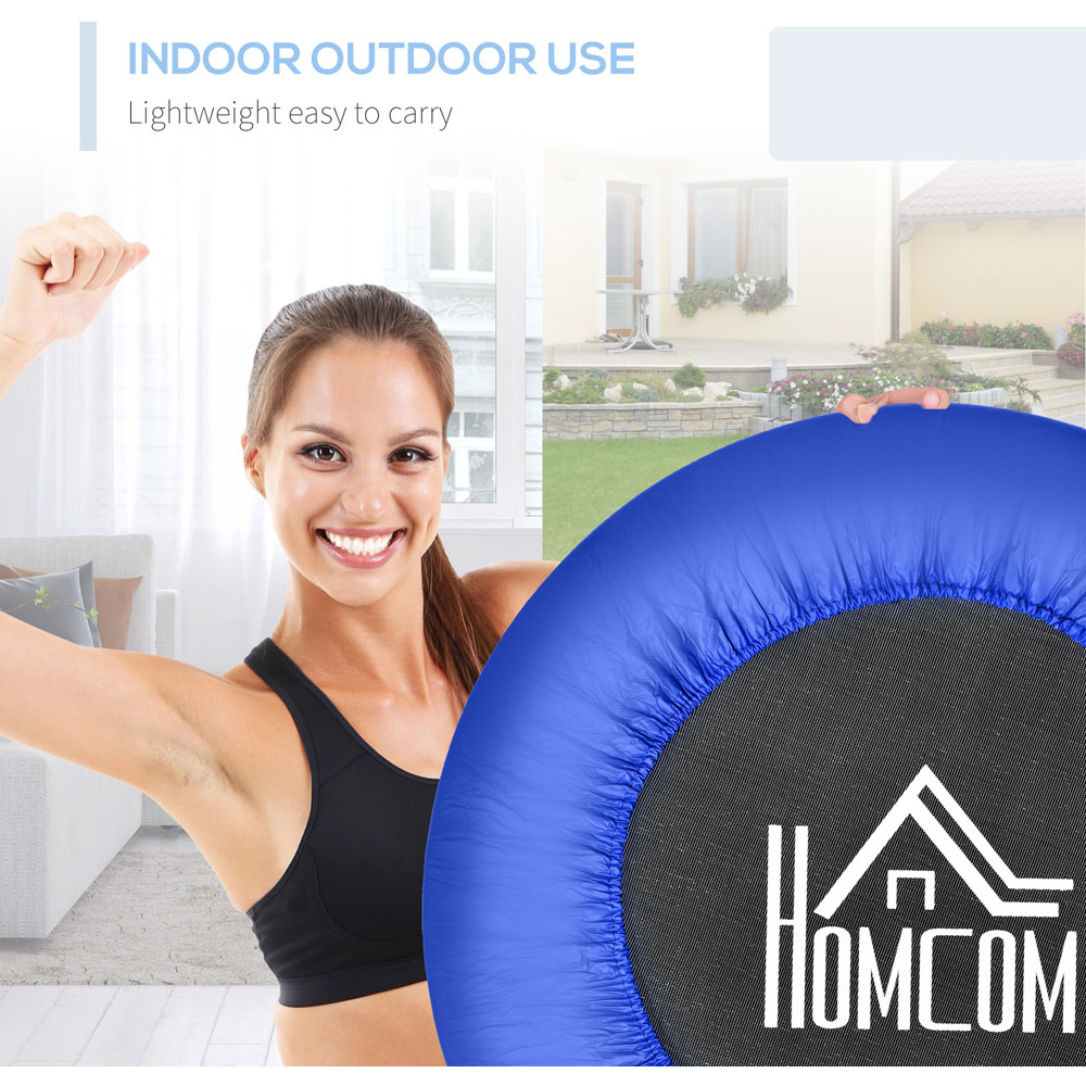 Stay healthy with this trampoline from HOMCOM. You'll improve your cardiovascular health, tone your lower body, burn calories, improve your balance and strengthen your core muscles. Its solid metal frame fully supports you when using, whilst the plastic padding is long-lasting and suitable for daily use. Safety springs are included, so it's less likely you'll injure yourself when exercising. It's a superb way to keep active from the comfort of your home. Full workout: Boosts cardiovascular health, tones the lower body, burns calories and improves balance. Suitable for indoor or outdoor use, such as gardens, schools, clubs, living rooms, etc.