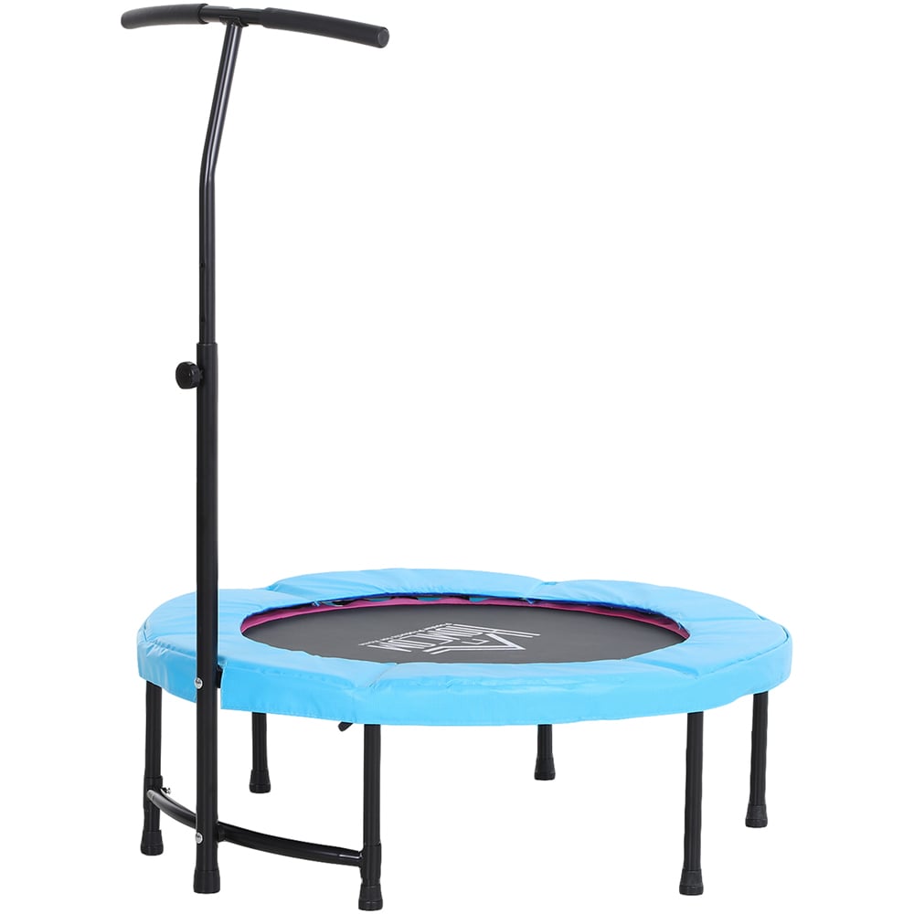 The HOMCOM trampoline with handle is a great choice for adults and youths to enjoy together or train their bodies. The design of protective pad keeps user from being injured while jumping on the mat. Using the elite HOMCOM Mini Trampoline allows you to carry out physical activities without putting strain on your joints, as the rebounder absorbs your impact much more than harder floors. FULL BODY WORKOUT: This small trampoline is greatly for teens and adults, our trampoline suitable for sports enthusiasts and fitness shapers, improve full body balance and burn calories. ADJUSTABLE HANDLE: Rebounder trampoline for adults with adjustable handle bar can be changed to three height levels from 116-132cm, makes bouncing safer and height friendly for teens and adults. STABLE: Steel legs covered with anti-slip post cap which keep the rebounder wear-resistant and strong, the steel tube not only make the trampoline safe but also make the jumping quiet.