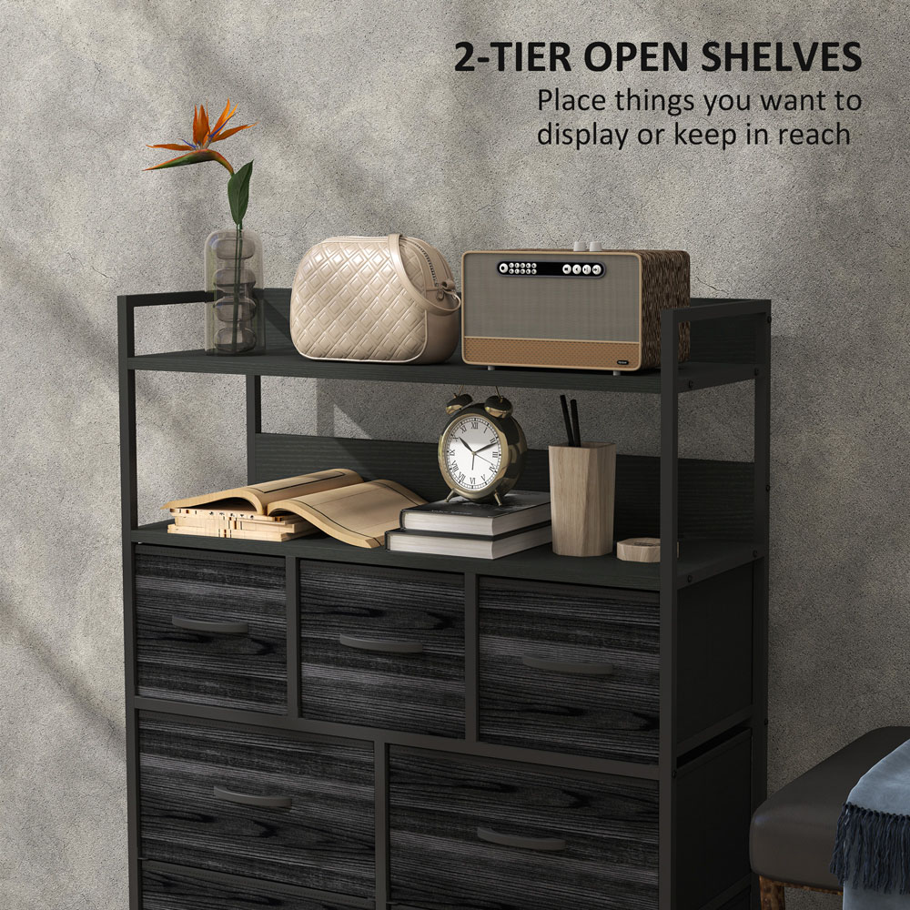 Bring effortless organisation to your bedroom with a large dresser that blends industrial flair, offering both style and versatility for any interior. Seven spacious drawers and two handy shelves let you store clothing, accessories and display cherished ornaments, while the powder coated steel frame ensures lasting strength and stability. Adjustable feet help keep everything balanced, making it an ideal choice for small bedrooms where every bit of storage counts.
