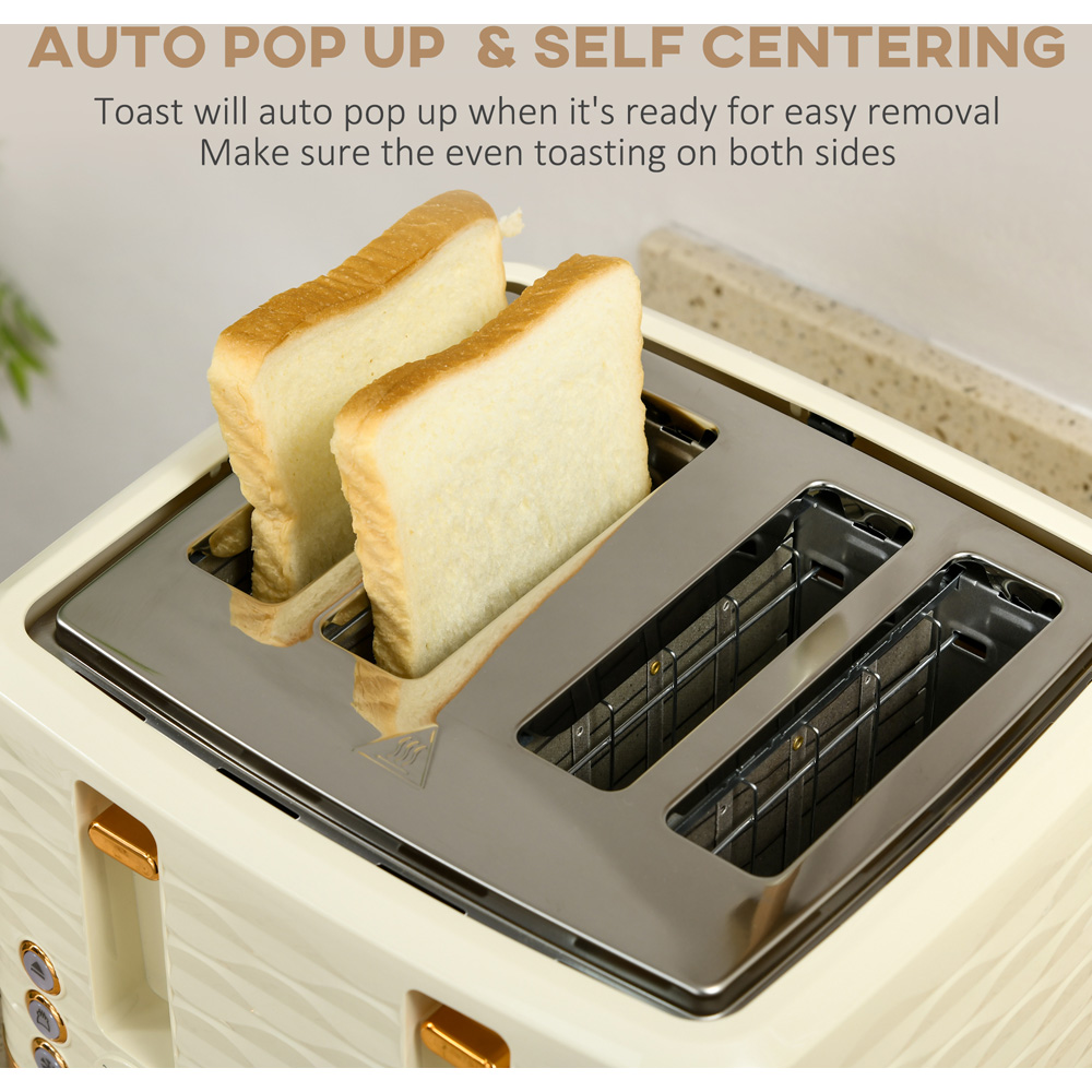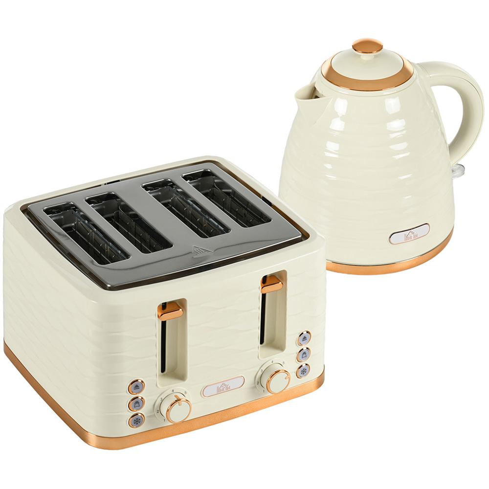 Kickstart your mornings with the HOMCOM 800-162V70BG Beige Kettle 1.7L and Four Slice Toaster Set. This 3000W beige-coloured set comes with a 1.7-litre rapid boil kettle and four-slice toaster, which has a ridged texture with a glossy finish, completed with a chrome-coloured accent for a chic, polished look. The toaster has seven browning levels with defrost, reheat and cancel options. Meanwhile, the water kettle can make up to six cups of tea and has a water level indicator, thermostat and a handle, making it a great option when your friends come around and you want a catch-up.
