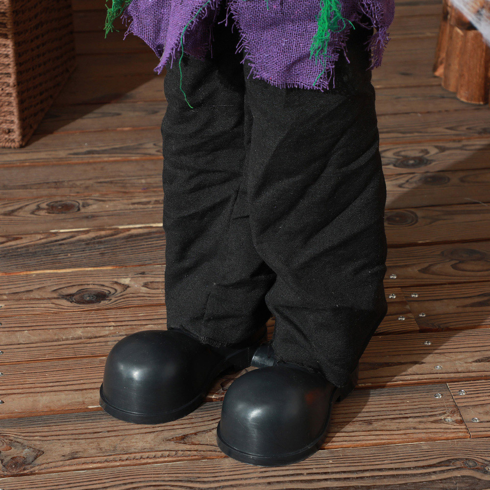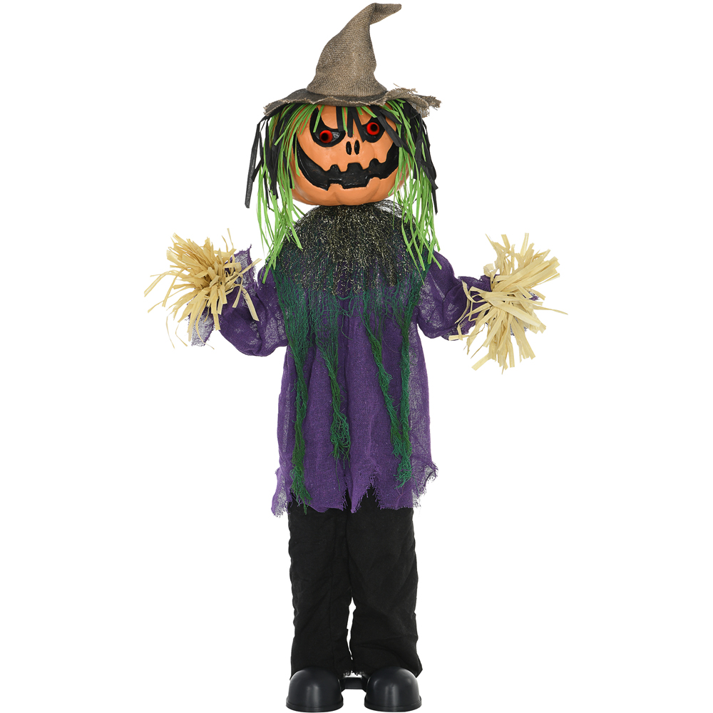 Prepare for a spooky experience with the HOMCOM Animated Sinister Pumpkin Halloween Prop 4ft. This eerie animated pumpkin man features poseable arms. When triggered by touch or loud sounds, this sinister figure twists its body, has eerie red glowing eyes, and plays circus music. It's perfect for outdoor Halloween decorations, such as haunted houses.