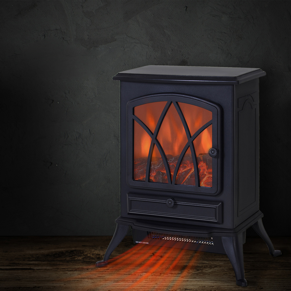 Bring warmth to your home with HOMCOM Ava Electric Flame Log Burner Fireplace Heater. Electrically operated with bulb light for flame effect, this cast iron effect fireplace makes for an ideal addition to your living space. It ensures you a permanent comfortable heat and provides the complete aesthetics of a wood stove without the inconvenience. Traditionally styled - it comes with a black cast iron effect finish and a log frame effect. With natural-looking wood effect logs - it gives your the pleasure of building your own fire. The inner flame effect is generated by a bulb light and creates a wood-like burning, realistic flame effect.