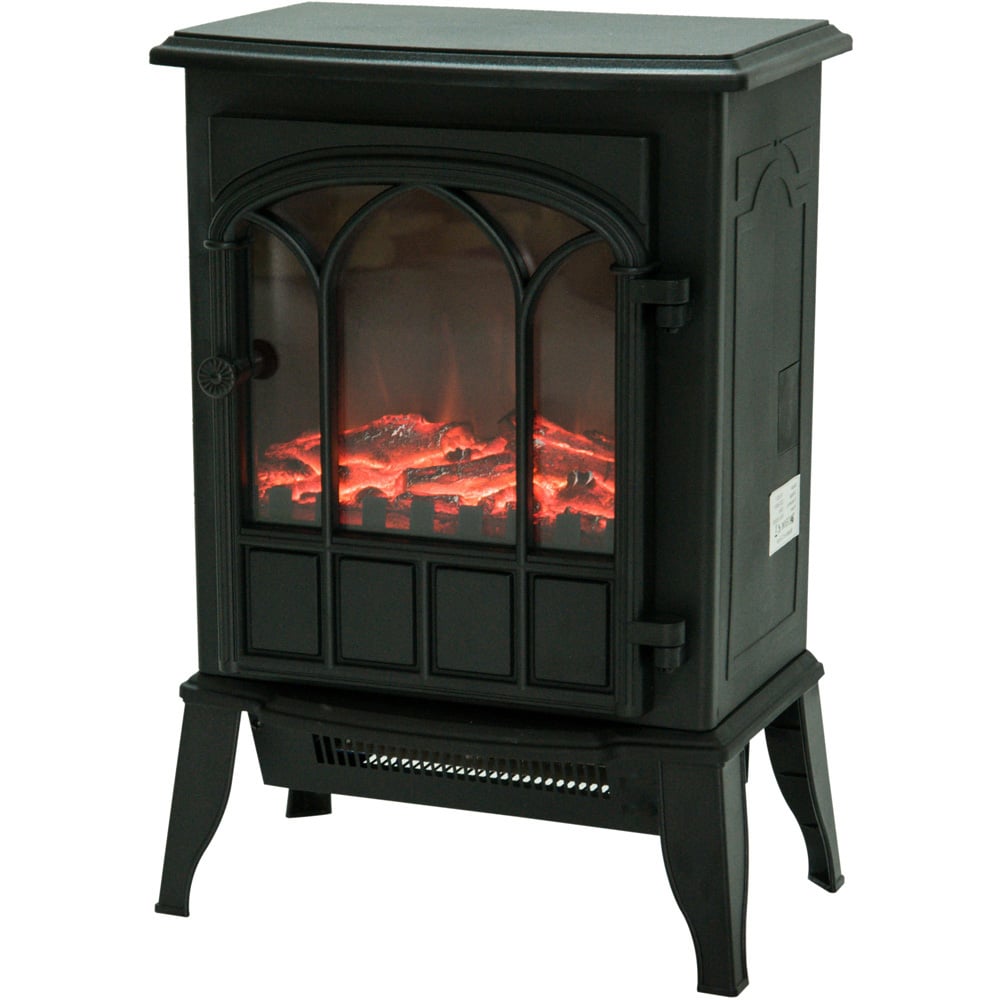 HOMCOM Ava Black Stove LED Flame Effect Electric Fireplace Heater 1000W