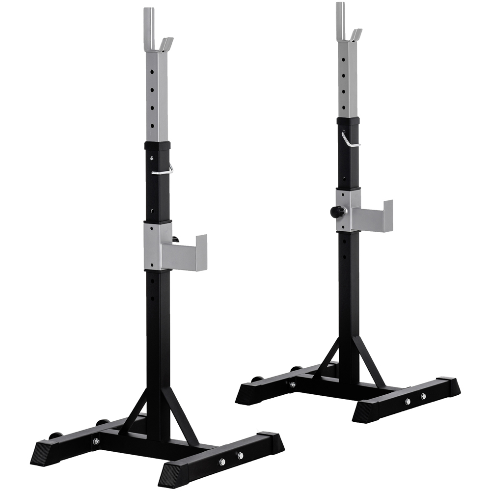 HOMCOM Black Adjustable Barbell Squat Rack with Wheels Set of 2