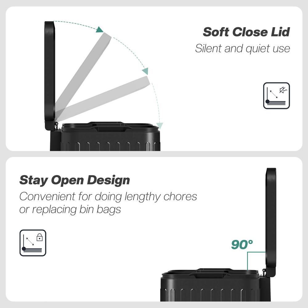 Keep kitchens tidy and organised with a double pedal kitchen bin that offers two spacious 20L compartments, making recycling and waste separation a breeze for families. Crafted from powder coated metal in sleek black, this dual compartment recycling bin resists fingerprints and wipes clean in seconds, while the pedal-operated soft-close lids keep things hygienic and quiet. With a roll of rubbish bags included, you'll get started straight away and enjoy efficient kitchen waste management every day.