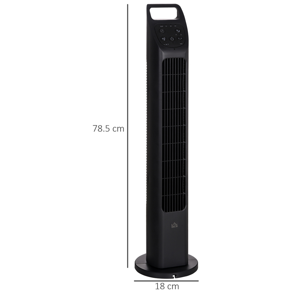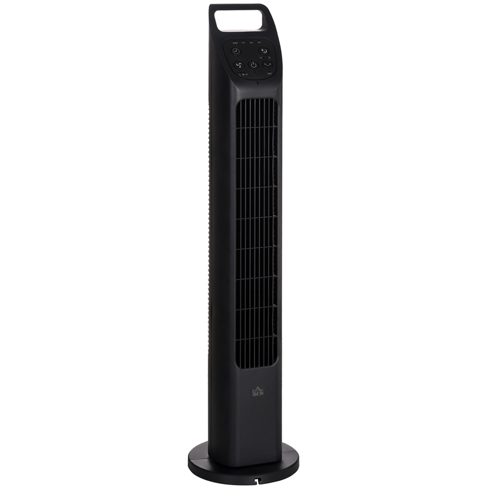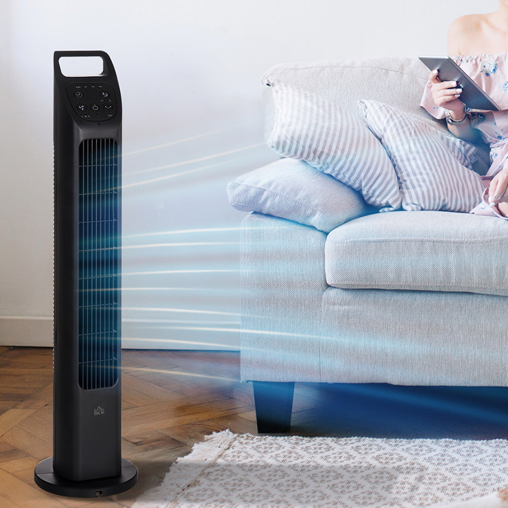 Enjoy a comfortable cool sleep time during those hot summer nights with HOMCOM Black Tower Fan 31 inch. Easy to use – it makes for a perfect addition to your home and office. Featuring nine settings – the electric fan switches between low, medium, high speed and normal, natural, sleep mood for a comfortable cooling experience. The 75-degree oscillating design makes people in different directions of the room enjoy the cooling breeze while the four-hour timer allows you to schedule the cooling cycle.