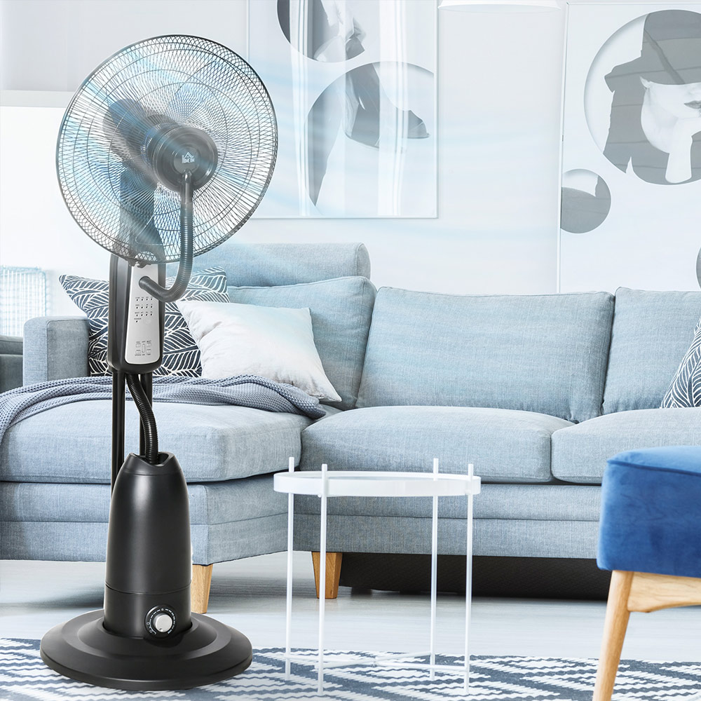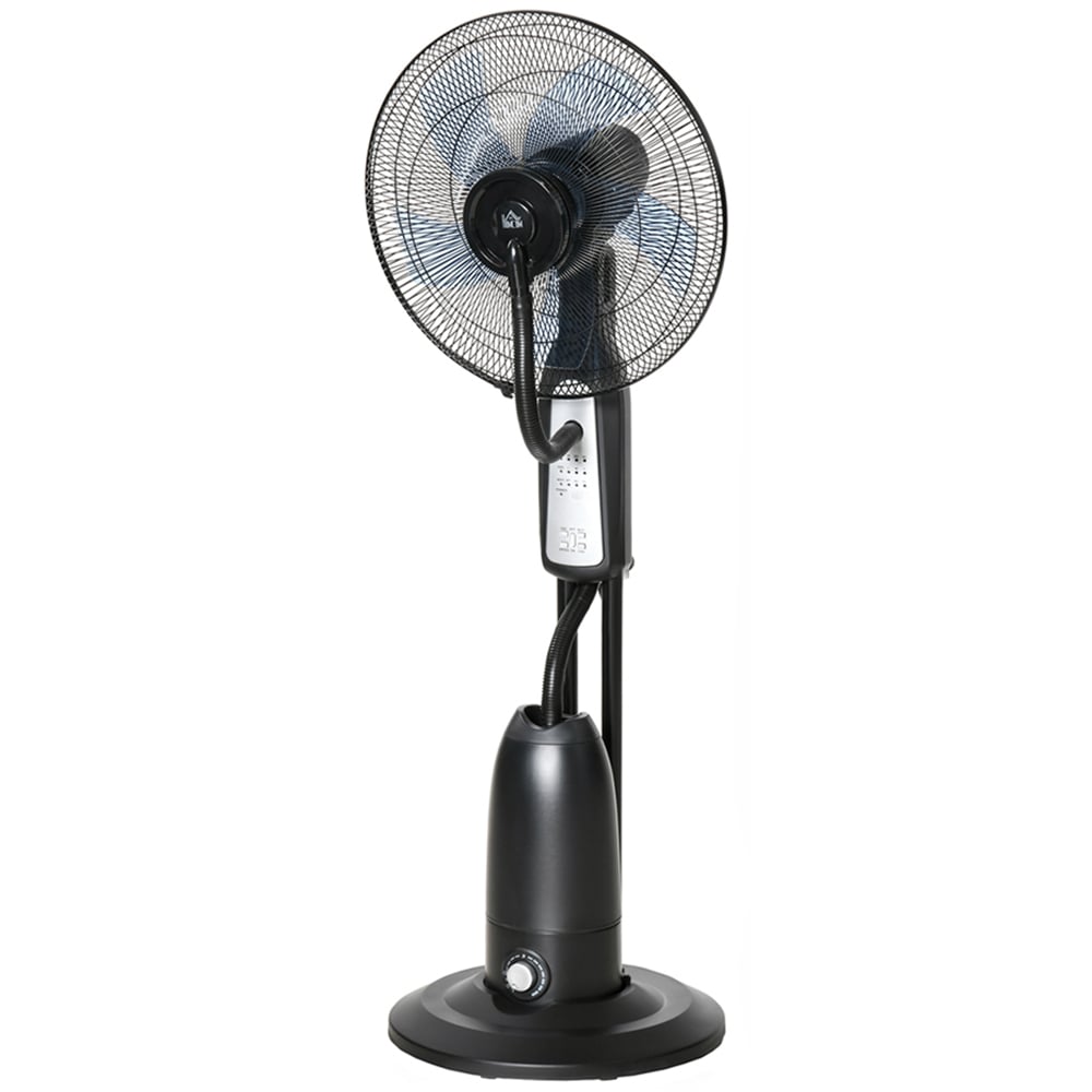 Hot summers just got cooler with this HOMCOM Black Water Spray Fan. Fitted with a 2.8-litre tank, this device is perfect for dispersing water gently, making that cool air extra refreshing. Easy to use, simply flick between low, medium, and high speed and the normal, natural, and sleep modes to suit your needs. With a tall design, adjustable 70° oscillation, and 10° tilt, this fan is perfect to cover a larger area whenever needed. Also, it comes complete with wheels on the base to easily move from one place to another. Size: 47 inches.