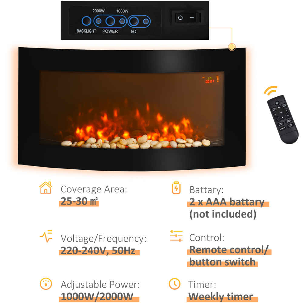 HOMCOM Electric Wall Mounted LED Curved Fireplace