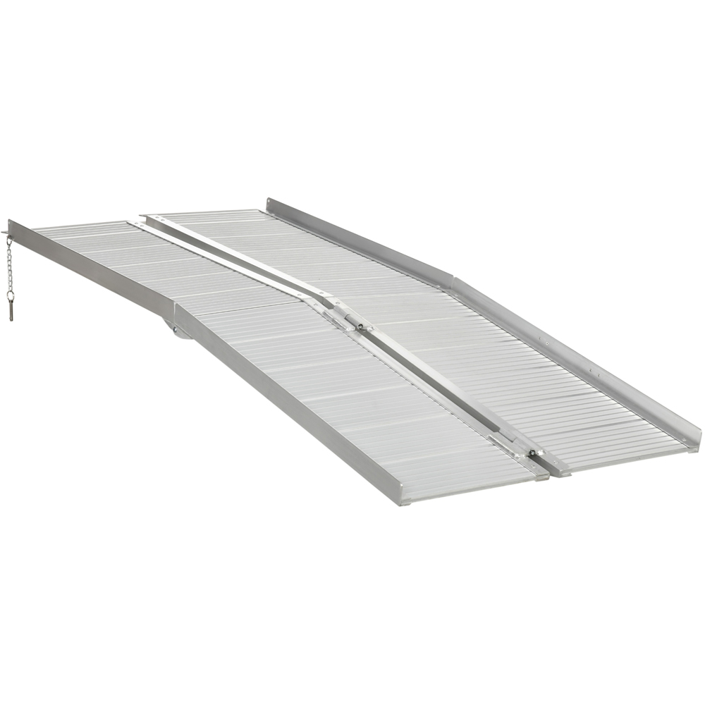 Let HOMCOM help create complete, easy mobility with our wheelchair ramp. Built from a sturdy, anti-corrosive aluminium alloy, this portable ramp uses a ribbed surface to prevent sliding in any weather and has two high side walls to help prevent accidental falls. The threshold ramps is 183cm long, and applicable height is 17-45cm, recommended height is 17-30cm. Not only for use with wheelchairs, this ramp provides ease of access for scooters, bikes and any other unwieldy wheeled object.