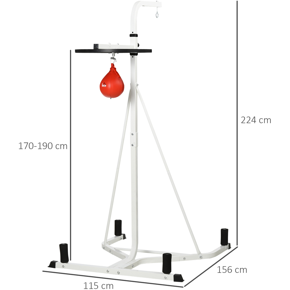 Enhance your boxing technique in the comfort of your own with this speed bagplatform from HOMCOM. Made of powder coated steel for stability and steadiness, the speed bag is adjustable, allowing you to set it to the correct position to fully utilise your workouts and prevent any strains that could occur from punching too high or low. It is great for working on a variety of techniques, speed and punches, helping you to build your speed, improve your skills and become more confident and agile. Speed bag punching exercise: The punch bag stand features a speed bag allowing you to work on exercises and techniques and improve your skills, confidence and agility. Heavy duty frame: This speedball platform is made of steel frame with powder coating, this unit is equipped with a triangular base, it is stable and steady. Easy assemble: This punching bag stand is convenient to assemble, come with all the screws and tools, follow the instructions step by step, have fun with the sport facility.