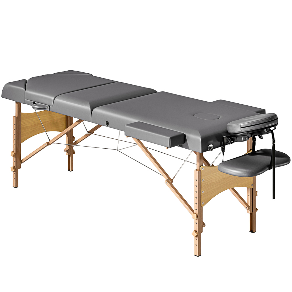 Sink into relaxation with a portable folding massage table that brings comfort and flexibility to any setting, thanks to its adjustable height, reclining backrest and supportive face cradle with armrests. Crafted with sturdy beech wood legs, this grey foldable massage bed is ideal for therapists or home use, offering a spacious lying area and easy foldaway portability. Soft faux leather upholstery is water-resistant and simple to clean, so you'll enjoy hassle-free upkeep and everyday use. At just 15 kilograms, this lightweight massage table with adjustable face cradle ensures transporting and storing it is effortless.