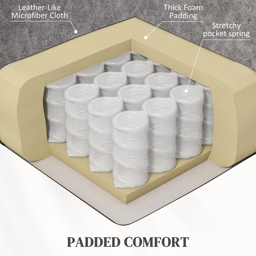 Pull the side pull tab to sink into your comfort. This HOMCOM recliner chair is thickly padded all over, with a 135° manual back and footrest, so whatever you want to use this armchair for, it gives a soft foundation. Both arms come with a cup holder, so your drink will be close to hand. Wrapped in microfibre faux leather, this is a soft and stylish piece you'll love spending your time in. 135° manual reclining back, with footrest: Pull the side pull tab on this recliner armchair to operate. Easy to choose a position you want. Thick foam padding and microfibre upholstery: Also with a pocket spring system, this is a comfortable recliner armchair, great for relaxing in after a long day. Cup holders: Keep drinks right next to you, so you don't have to move once sat in this armchair.