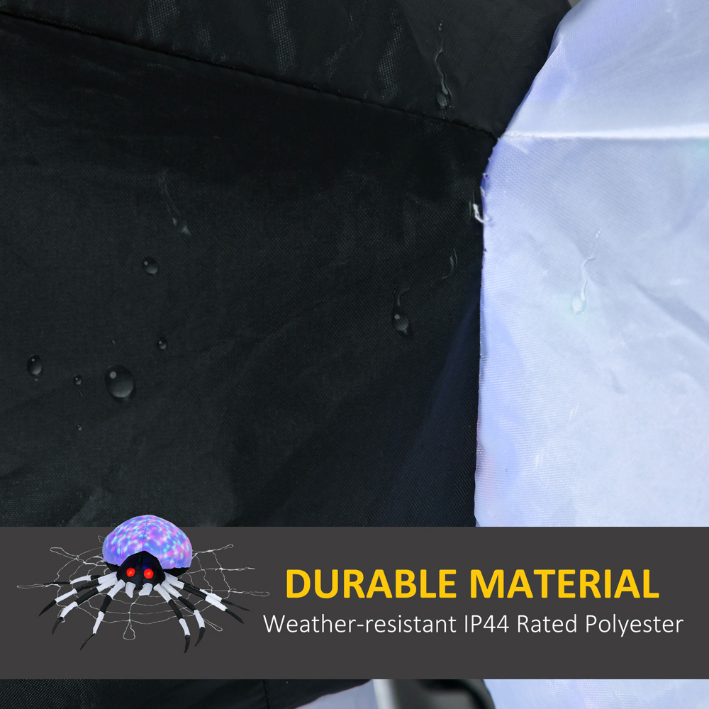 Get ready to add some extra fun and a touch of spookiness to your Halloween with the HOMCOM Halloween Inflatable Spider 5ft. This inflatable decoration can be used indoors or outdoors, thanks to its weather-resistant polyester shell, and it inflates automatically when powered on. It also features three LED lights that emit a soft, bright glow, perfect for nighttime enjoyment and two web straps to attach places indoors and outdoors, such as a wall or a tree. The durable fabric ensures it retains its shape and colour, while the IP44 rating means it's safe for mild outdoor weather. Plus, it comes with six ground stakes, and two guy ropes, to keep it securely in place. Both kids and adults will love it.