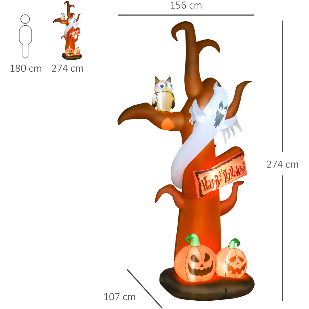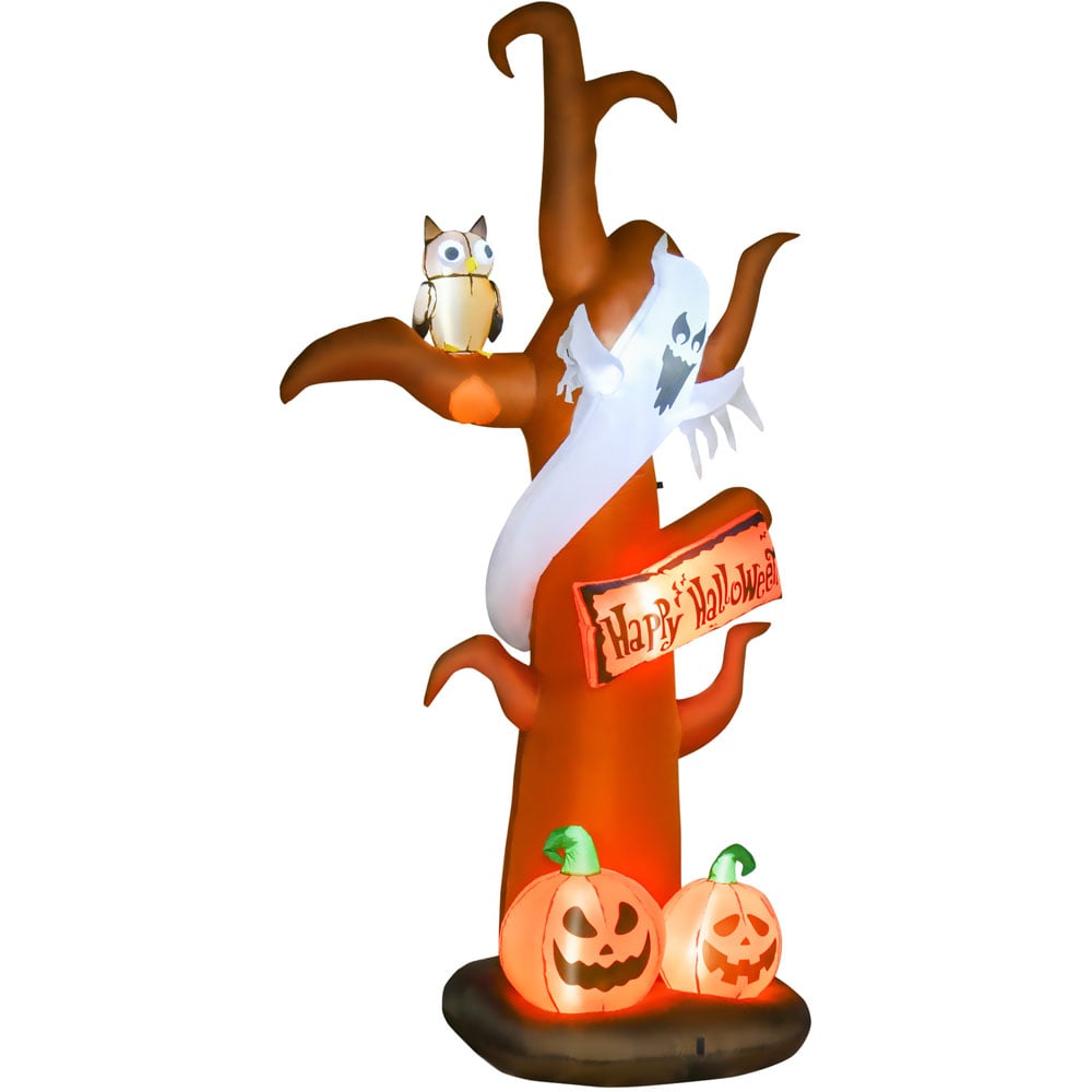 Add a spooky touch to your Halloween decorations with HOMCOM Halloween Ghost Pumpkin. Made from durable and weather-resistant polyester, with an IP44 rating for outdoor safety - it is safe against light or mild water and liquids. With five LED lights inside the shell - it creates a cool and atmospheric glow, making night times more fun (and a little scary!). It automatically inflates into a pumpkin, ghost and owl around-a-tree design when plugged into the power source and deflates just as quickly.