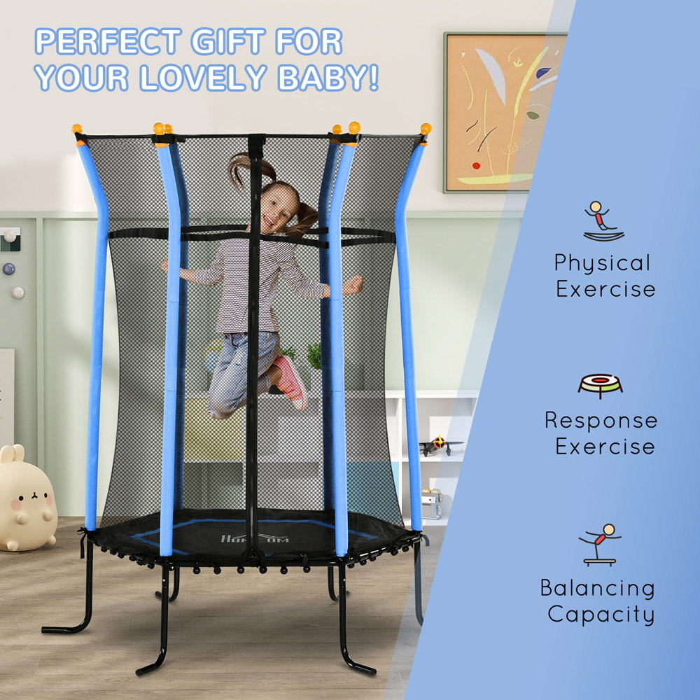 This HOMCOM trampoline for kids provides hours of fun – a great way to keep kids active. Made from powder-coated steel, it's strong, sturdy and built to last – giving children years of entertainment. They'll bounce and play safely, thanks to the enclosed net and padded poles, which stops them from falling off, whilst its bungee design replaces traditional metal springs, making it much safer to use. With a lightweight structure, it's easy to move and can be used indoors and outdoors.