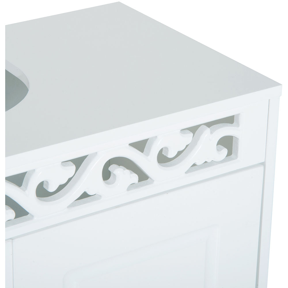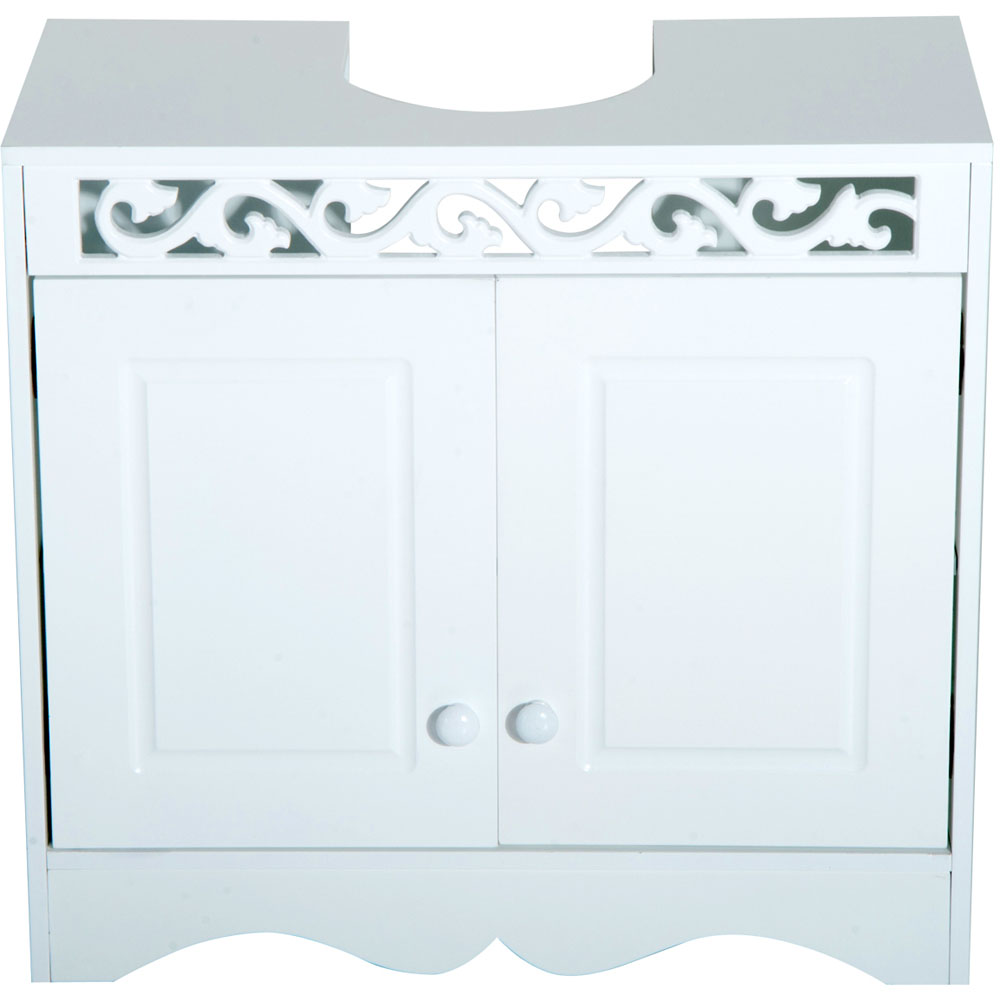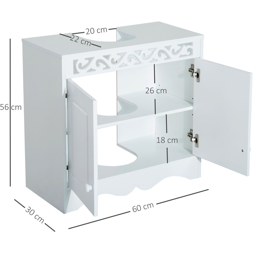 HOMCOM Kleankin Under Sink Cabinet is a stylish under-sink cabinet finished in a shade of white that will blend perfectly with most deco. Modern styling and clear craftsmanship design on doors are ideal for improving the ambience of the room. The shade of white, which goes with most decor. Features double doors with internal shelves to ensure lots of storage for all bathroom essentials. The sink is not included. Do not fit with Pedestal Sink.