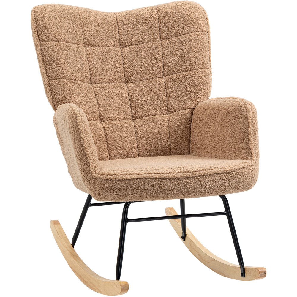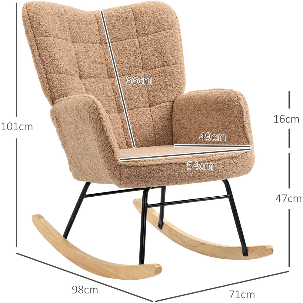 Soft, rocking and spacious - take time out in comfort with this HOMCOM rocking chair. The wingback shape comes in a large size, so there's plenty of room to sink into, with a padded seat for comfort and high back and armrests for support. Metal legs for support, fitted with a curved wooden base - rock forwards and backwards gently. Finished with fleecy upholstery, adding to the overall softness and comfort.