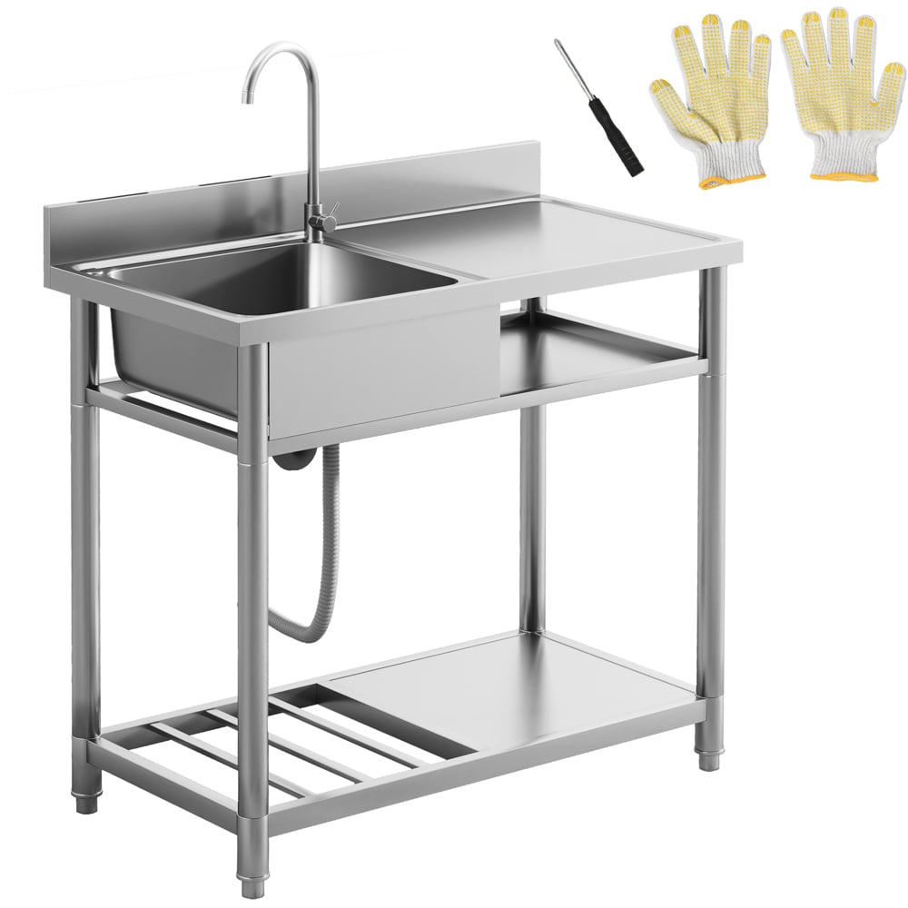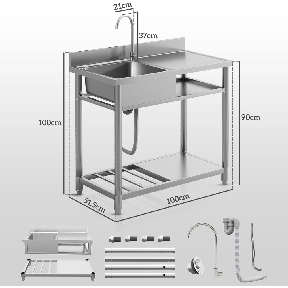 Whether for your garden, garage, laundry room, or outdoor kitchen, HOMCOM's stainless steel utility sink delivers exceptional performance indoors or out. Keep your essentials organised and close at hand with the practical lower storage shelves. Offering both hot and cold water options, this sleek, portable catering sink is a must-have for any space.