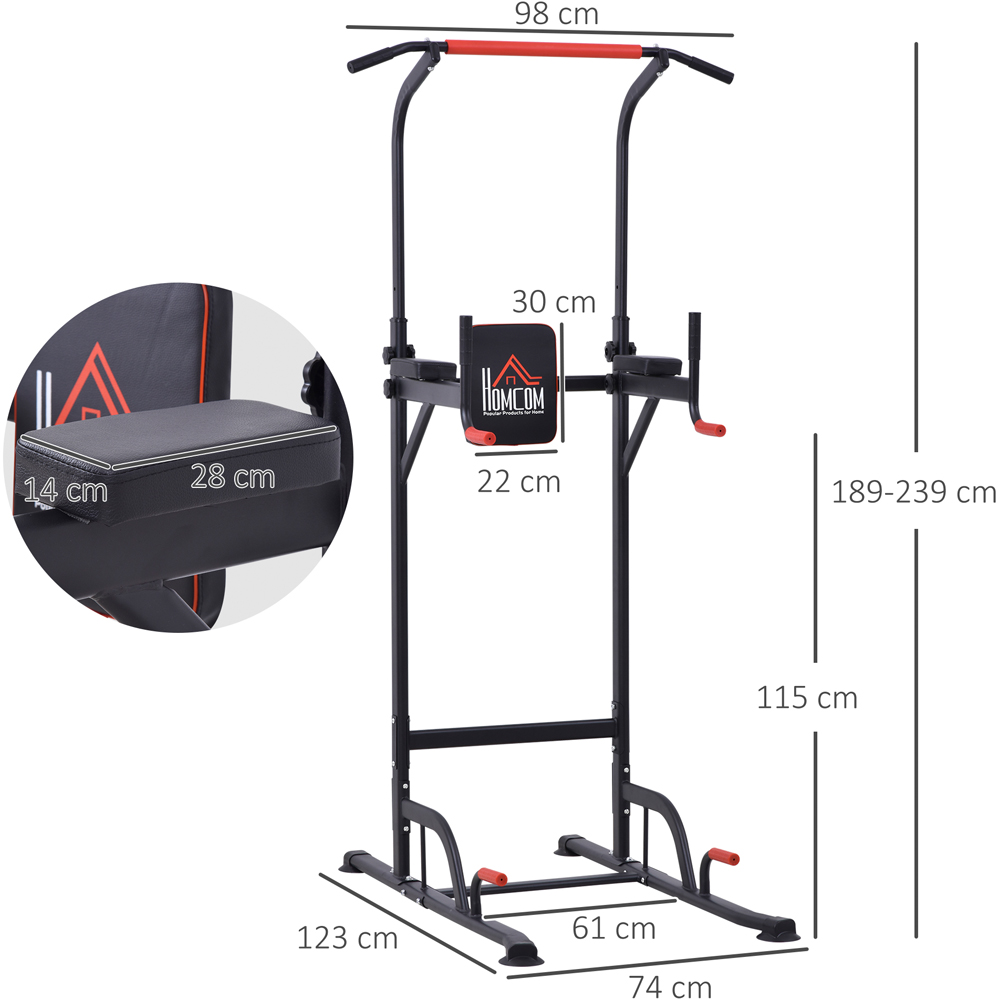 Get working your upper body to the best it has ever been - go for this power tower from HOMCOM. The pull up station is made from steel, is tough and rigid and can support up to 120kg, giving you a steady and stable work out every day. Multi gym machine means you can do pull ups, dips, knee raises and even push ups so you can sculpt your body in various ways. It's finished with four large suction pads on the base to keep the squat rack stable and in place.