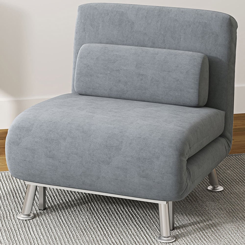 HOMCOM Single Grey Velvet Chair Bed with Adjustable Backrest