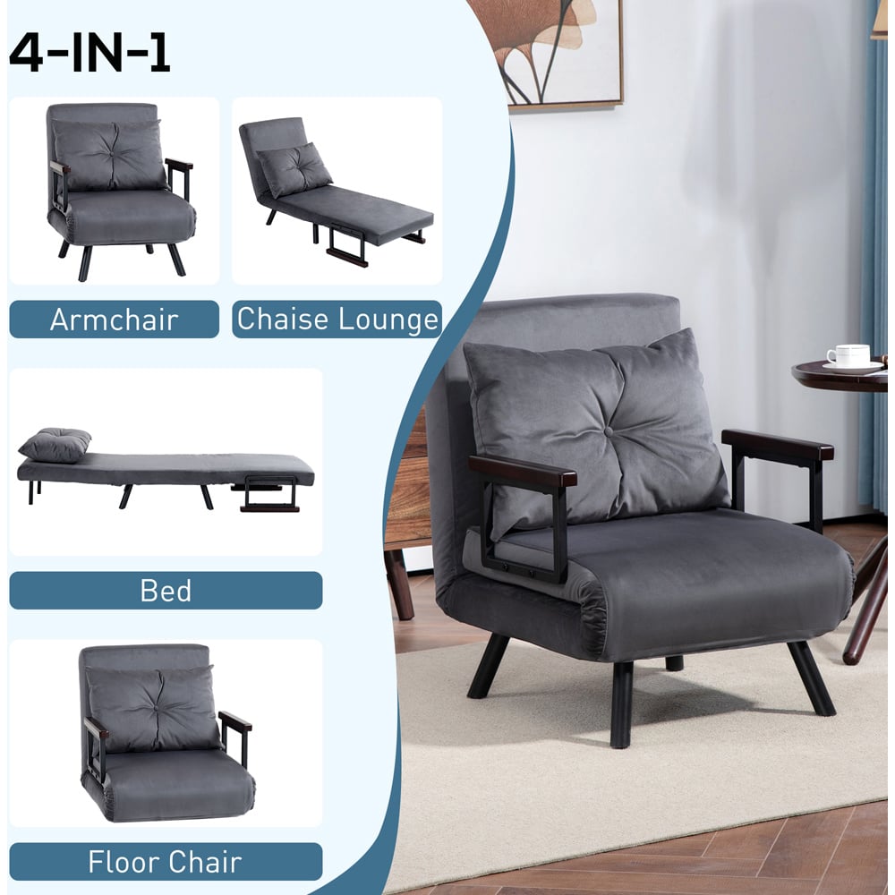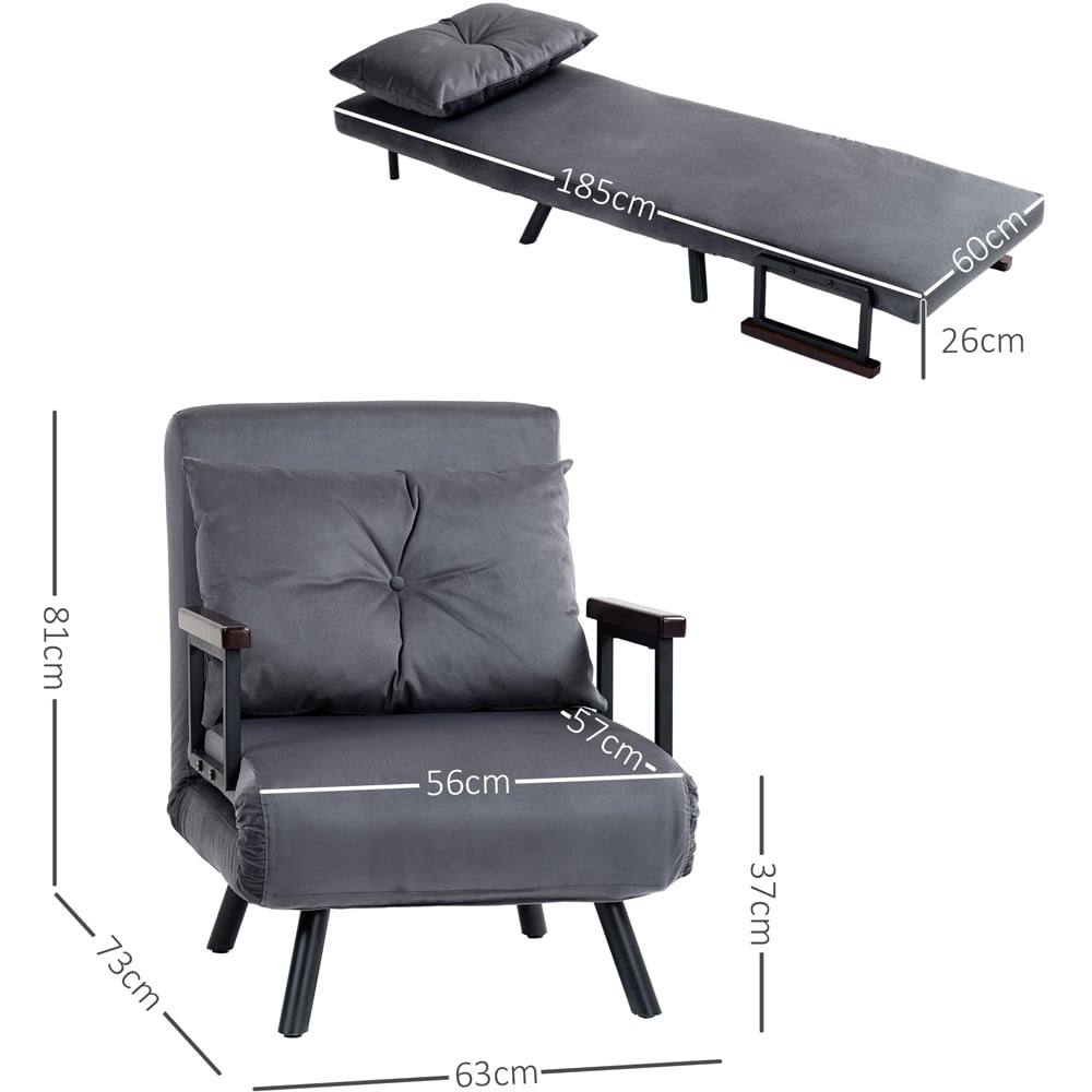 Switch from sitting to sleeping with ease, thanks to this HOMCOM folding chair bed. Using steel for the frame, it's tough and will support you through day and night. Look to the five-position back to set to an angle of your desire. It's filled with thick foam padding for comfort, with the velvet-feel upholstery for a soft finish. Give guests a cosy spot to sleep and relax, anytime they visit.