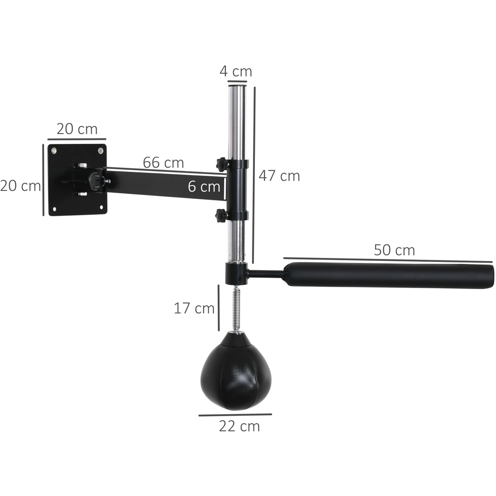 This quick-reflex speedbag is a lightweight, fitness-boosting addition to your home gym. Use it to enhance your upper body strength, speed, accuracy, coordination and endurance. The wall-mounted system allows height adjustment, so with a training buddy or in shoes that lift you higher, the speed ball can adapt to fine-tunable perfection. This HOMCOM strength training equipment makes a great performance tool for MMA, martial arts and more. Use it for amateur or professional practice. Lightweight and fitness aid: This lightweight boxing speed ball enhances reflexes, hand-eye coordination, punching speed, accuracy, strength and stamina for better cardiovascular and muscular health.