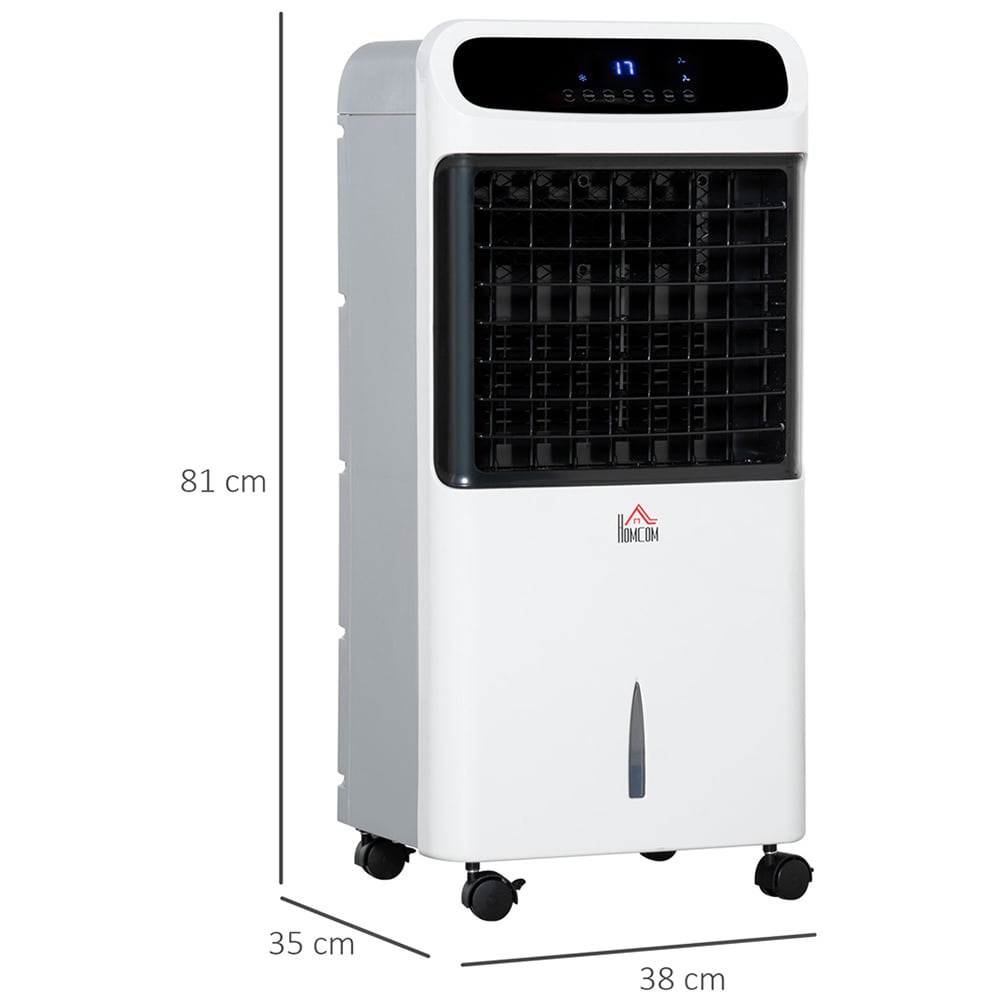 Stay comfortably cool this summer with the HOMCOM White and Black Evaporative Cooler 12L. The portable air cooler comes with ice boxes so you can make the air colder and more refreshing. With two functions ventilate and ice cool – choose a setting which suits you. The 60-degree oscillating movement covers a larger area. With ice boxes, the sir cooler fan is colder and fresher. Featuring nine settings – you can easily switch between low, medium, high speed and normal, natural and sleep mode. The 12-hour timer works in 1-hour intervals, which is great for sleeping at night.