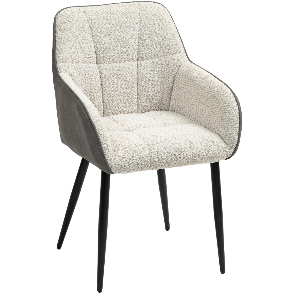 A soft stylish spot for wherever you want in the home, with this HOMCOM dining chair. Take it beyond the traditional dining room and use in the bedroom, hallway, lounge or similar. Thanks to the inner filling it's comfortable and thanks to the tall back and arms, your body will be supportive. The seat is wrapped in soft chenille, complete with a faux leather back for a touch of style.