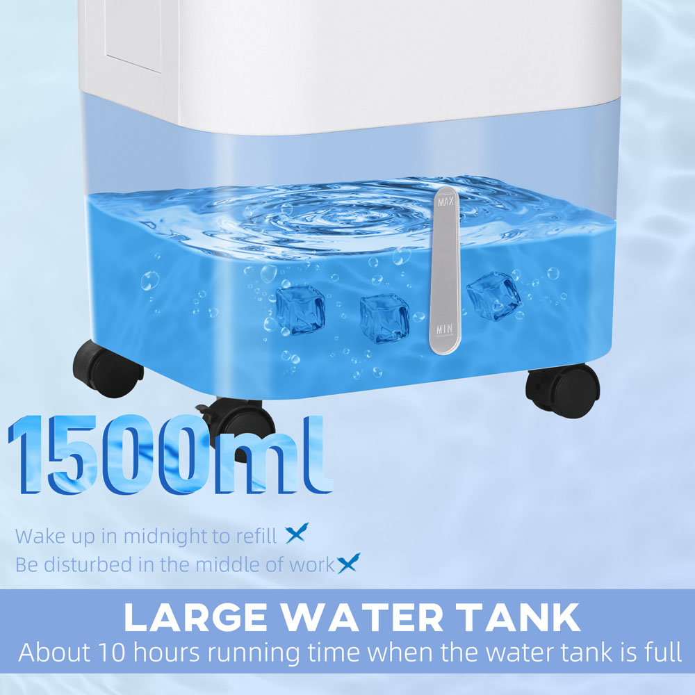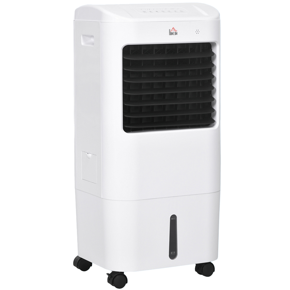 Keep your living space delightfully cool with the HOMCOM Portable Air Cooler with Humidifier. This innovative air cooler transforms hot, dry air using a water tank and optional ice packs, creating a cooler and more humid environment that's perfect for arid climates. The 60-degree oscillation ensures broad coverage, swiftly cooling rooms up to 15-20m². It's an energy-efficient alternative to traditional cooling methods, ideal for use in living rooms, bedrooms, basements, and even RVs. Experience the comfort of a cooler, more humid atmosphere that's kind to your skin and wallet.
