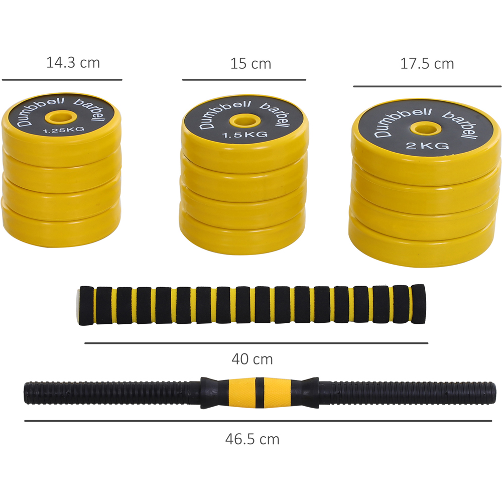 HOMCOM Yellow Dumbbell and Barbell Adjustable Set 20kg