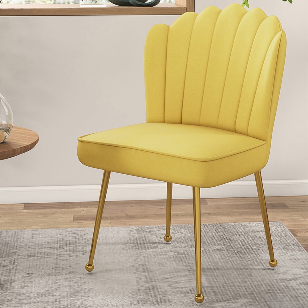 HOMCOM Yellow Shell Luxe Velvet Accent Chair with Gold Tone Metal Legs