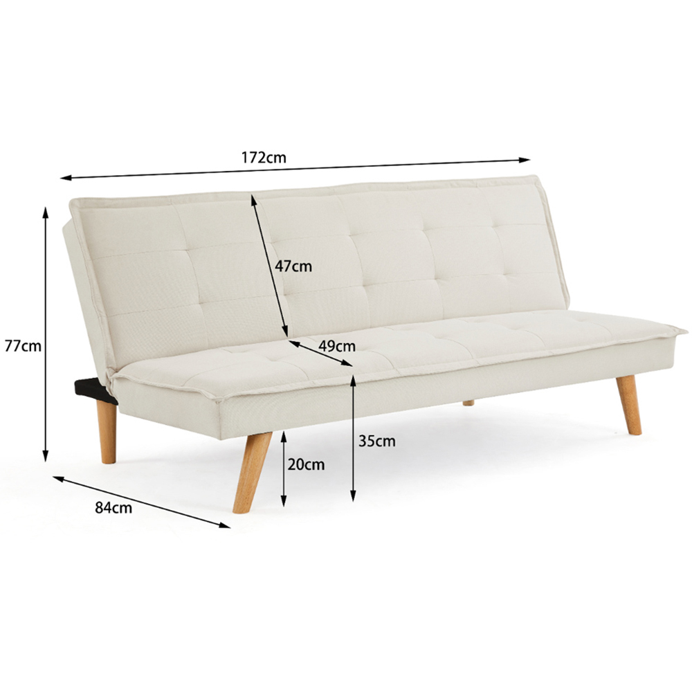 Add a classic touch to your home decor with the Home Detail Ada Double Sleeper Beige Fabric Sofa Bed. It is upholstered using soft fabric with a tufted design and cosy padded seating with a firm backrest. It can be easily converted into a comfortable bed with the click-clack mechanism. This handcrafted sofa bed has a high-quality construction with sturdy wooden legs for stability and support. One of the best ways to keep this sofa bed looking great is to vacuum it once a week. Use a low setting and the upholstery attachment of your vacuum cleaner to avoid any damage to the fabric. Just make sure to vacuum in the direction of the pile. Alternatively using a soft hand brush can fluff fibres back up and keep the fabric colour intact. Fabric appearance may vary due to differences in lighting and screen resolution on various devices. Please note: This sofa is a large item, so please ensure it will fit through any access doors and walkways up to and within your property. It requires a minimum door width of 80cm.