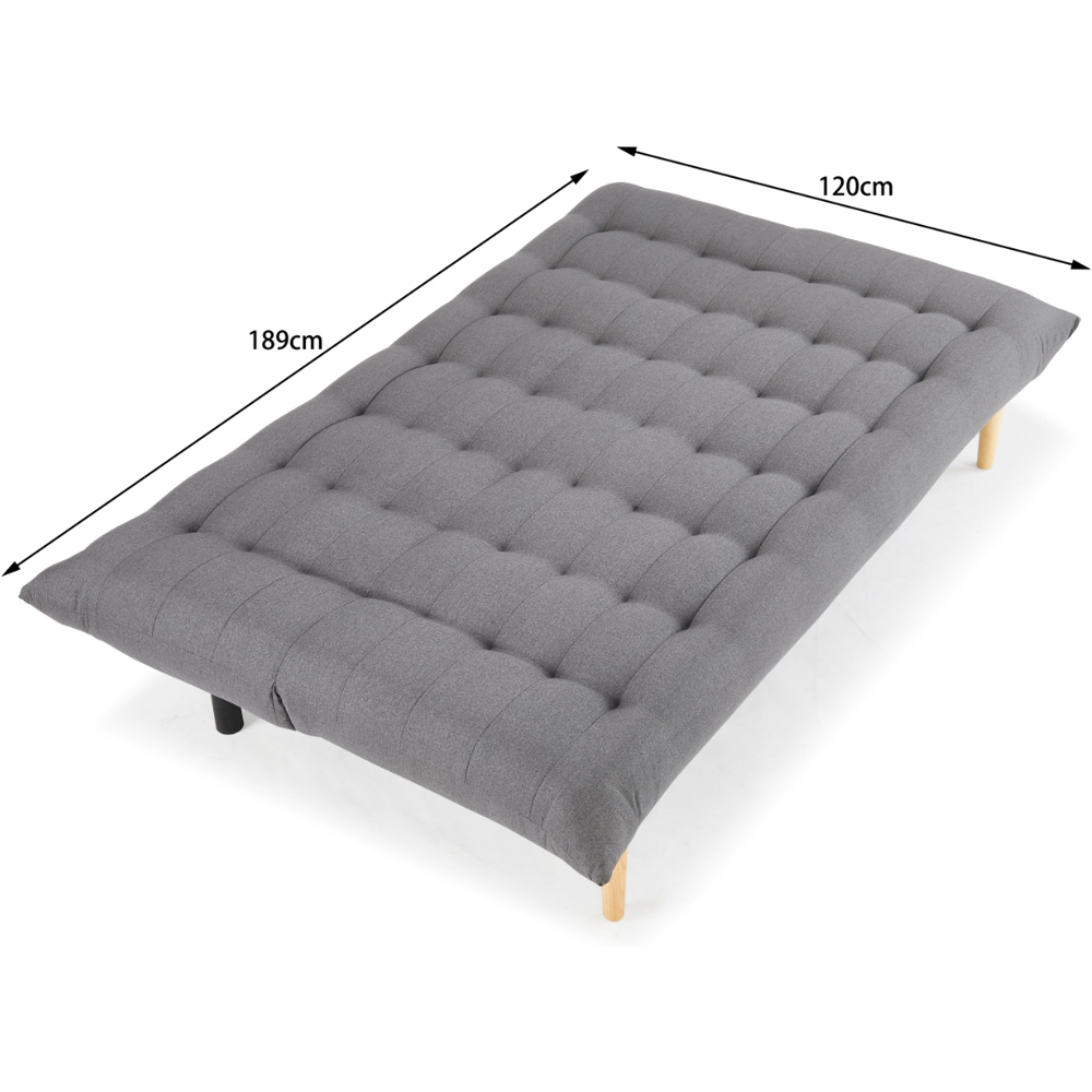 Unfold the comfort and maximise your space with the Home Detail Chatham 2 Seater Sleeper Dark Grey Sofa Bed, an ideal solution for those in search of a space-saving sofa bed. This small double sleeper sofa bed features a plushly filled tufted seat and backrest, providing a comfortable and luxurious pillow-like sensation. Its sleek, armless design is supported by wooden legs, offering a modern and elegant silhouette. The sofa is upholstered in a rich dark grey fabric, selected for its sophisticated appeal. Additionally, it is designed as a convertible sofa bed, with a straightforward clic-clac mechanism that enables you to easily and quickly transition from a sofa to a bed. Care and Use: One of the best ways to keep this sofa looking great is to vacuum it once a week. Use a low setting and the upholstery attachment of your vacuum cleaner to avoid any damage to the fabric. Just make sure to vacuum in the direction of the pile. Alternatively, using a soft hand brush can fluff the fibres back up and keep the fabric colour intact. Fabric appearance may vary due to differences in lighting and screen resolution on various devices. Please Note: This sofa is a large item, so please ensure it will fit through any access doors and walkways up to and within your property. It requires a minimum door width of 80cm.
