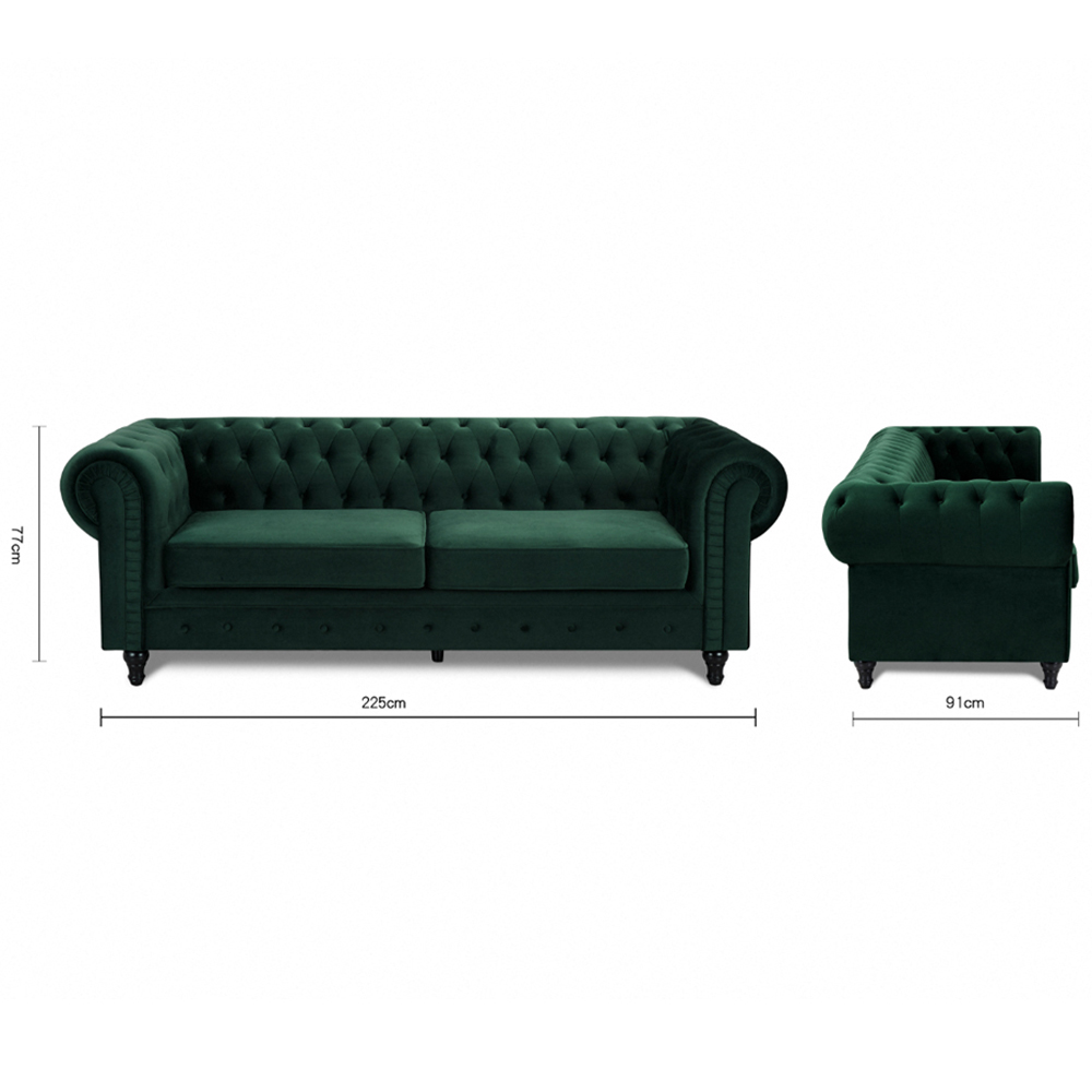 Home Detail Chesterfield 3 Seater Pleat Green Velvet Sofa