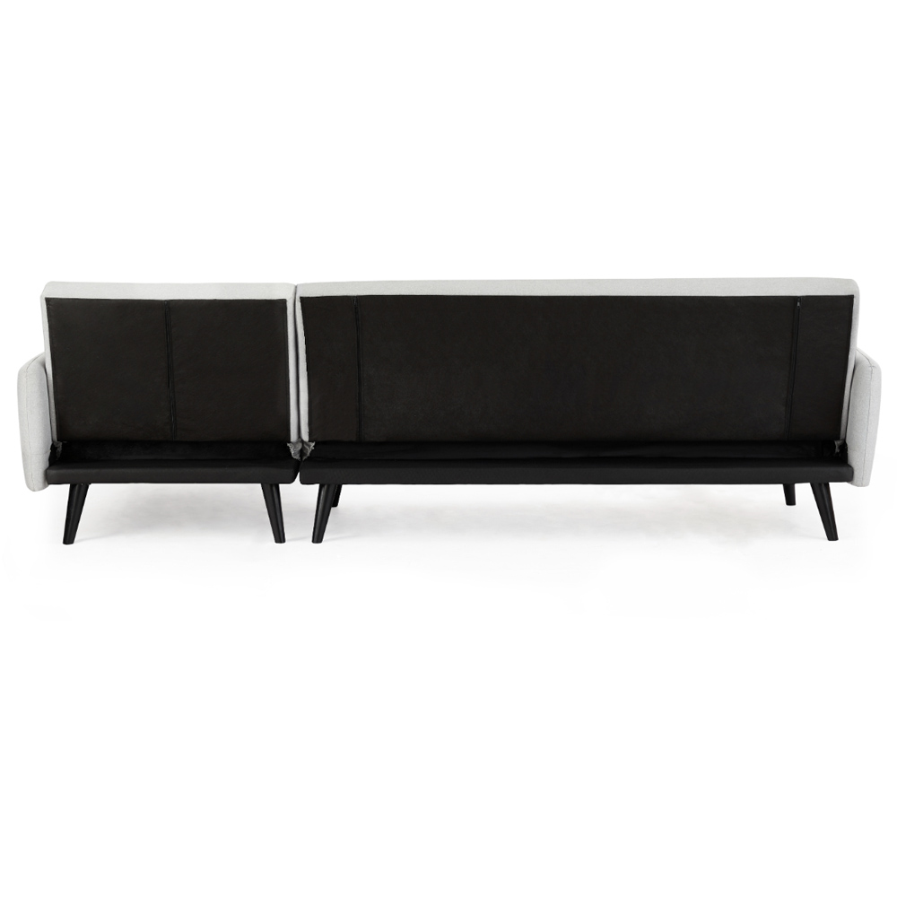 - Stunning L-shaped sofa bed in a light grey woven fabric