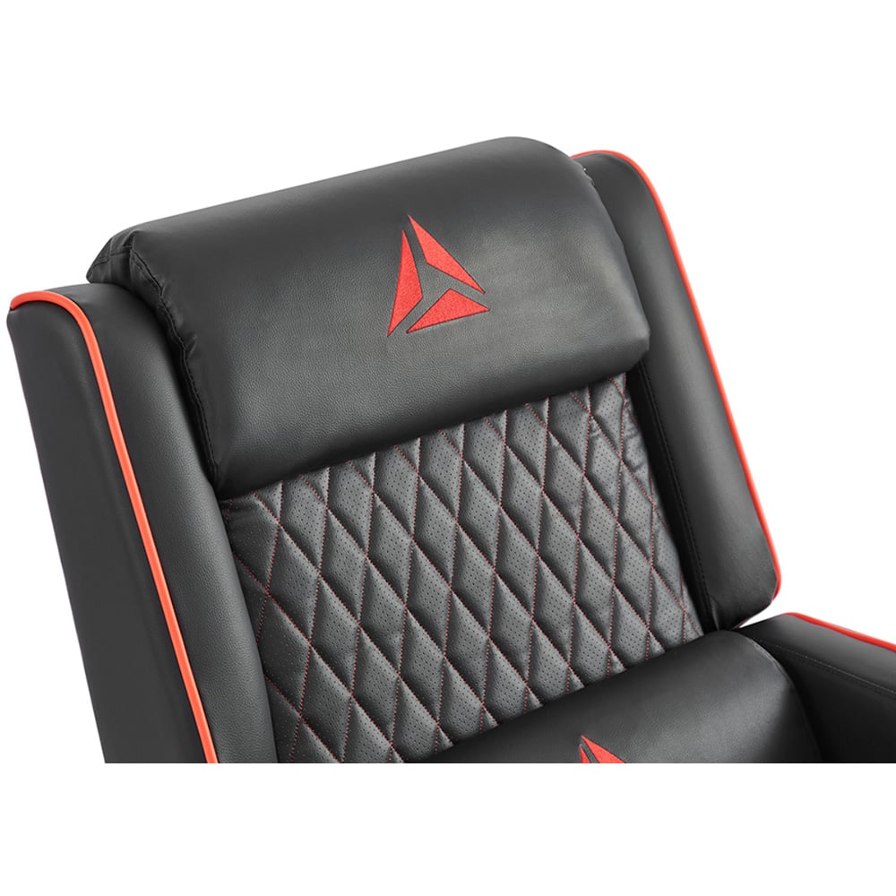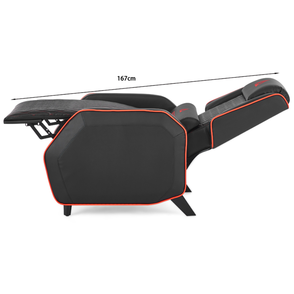 Go for the ultimate gaming throne with the Home Detail Cougar Black and Red Manual Gaming Recliner Chair. This stylish faux leather manual push-back recliner offers extra lumbar and neck support, making it perfect for long gaming sessions or relaxation. Its sleek racer design and contrast piping give it a super cool look. To recline, simply lean back using your body weight, and the footrest will pop up. When it's time to sit up again, just push yourself forward, and it will smoothly return to its original position. Plus, it's UK certified with UKFR and FSC.