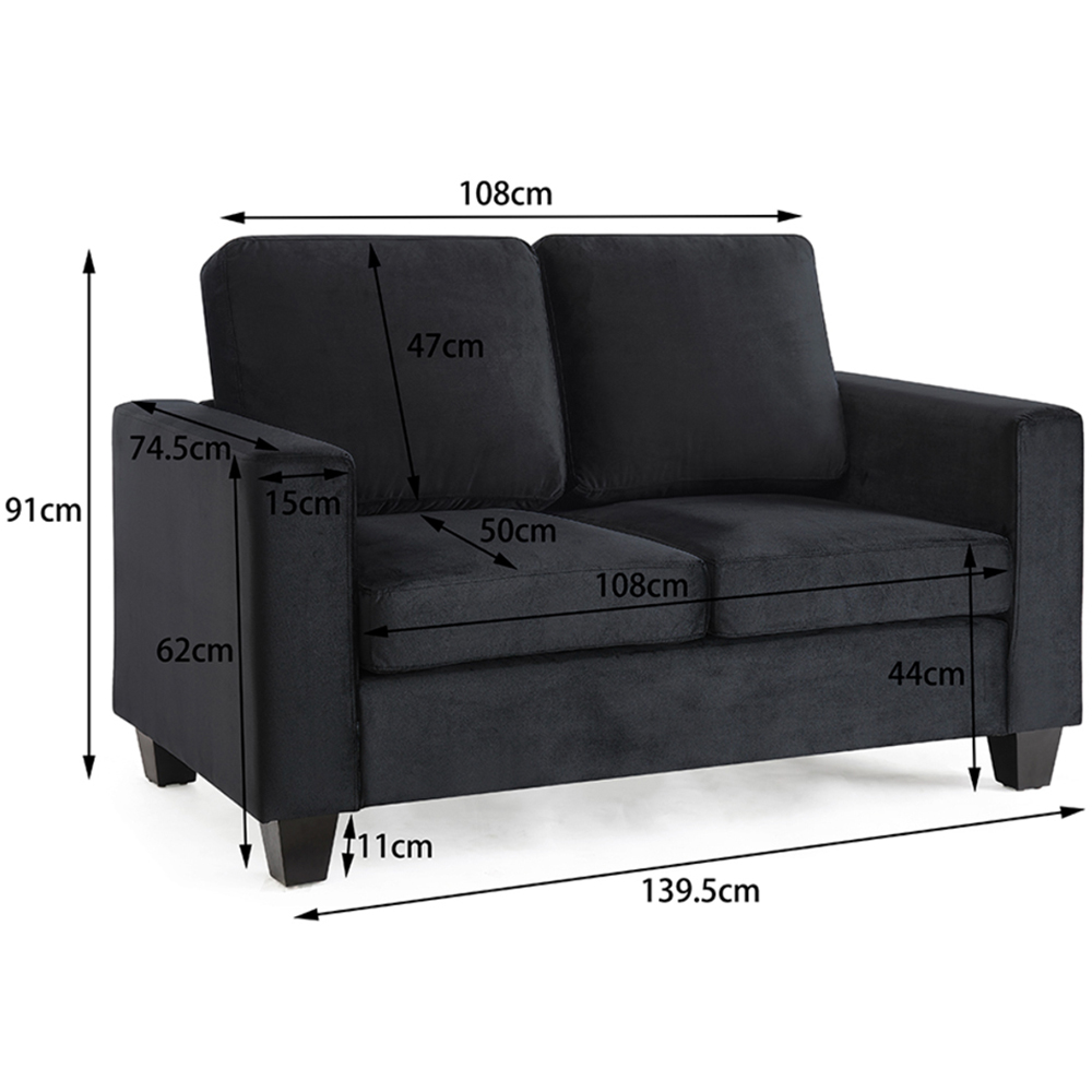 Elevate your home in style with Home Detail Dakota 2 Seater Black Velvet Sofa. This sofa is upholstered using soft velvet fabric with comfortable seating and a firm backrest for better comfort. This handcrafted sofa has a high-quality construction with sturdy feet for stability and support. One of the best ways to keep this sofa looking great is to vacuum it once a week. Use a low setting and the upholstery attachment of your vacuum cleaner to avoid any damage to the fabric. Just make sure to vacuum in the direction of the pile. Alternatively, a soft hand brush can fluff the fibres back up and keep the fabric colour intact. Fabric appearance may vary due to differences in lighting and screen resolution on various devices. Faux leather should be wiped clean with a damp cloth to remove any stains. Please note: This sofa is a large item, so please ensure it will fit through any access doors and walkways up to and within your property. It requires a minimum door width of 80cm.