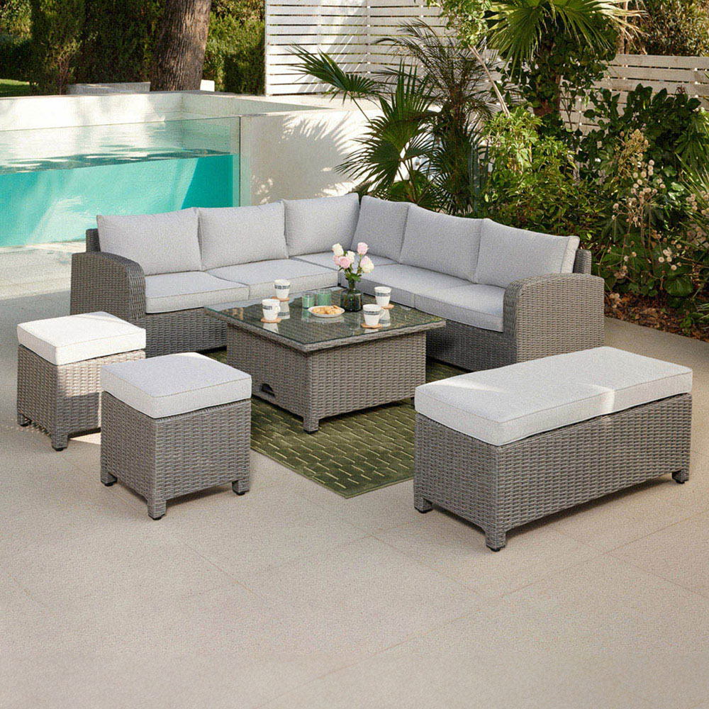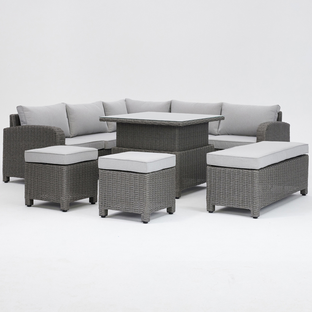 Home Detail Hadley 9 Seater Dark Grey Rattan Corner Garden Sofa Set with Rising Table