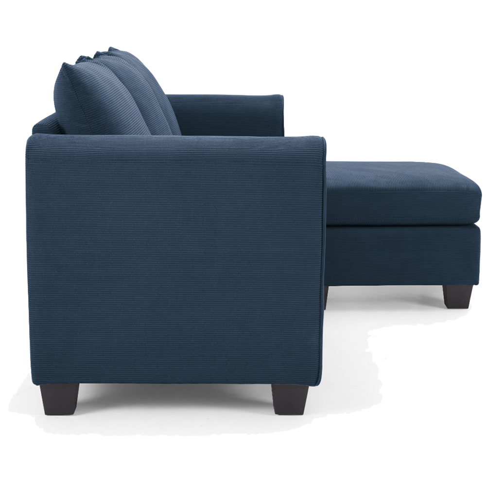 Elevate your home's decor with this Home Detail Halena 3 Seater Blue L Shape Sofa with Chaise. Handcrafted and built to last, it flaunts an L-shape and is covered in beautiful blue cord fabric. This sofa can easily seat up to three people and comes with a reversible chaise. The chaise can be arranged on the right-hand or left-hand, depending on your home' decor style. With this stunning sofa, enhance your living space ambience effortlessly. Care and Use: Vacuum this sofa once a week to keep it looking great. Vacuum in the direction of the pile. Use a low setting and the upholstery attachment of your vacuum cleaner to avoid any damage to the fabric. Alternatively, you can use a soft hand brush to fluff the fibres and keep the fabric colour intact. Ensure this large sofa will fit through any access doors and walkways up to and within your property. Minimum door width: 80cm.