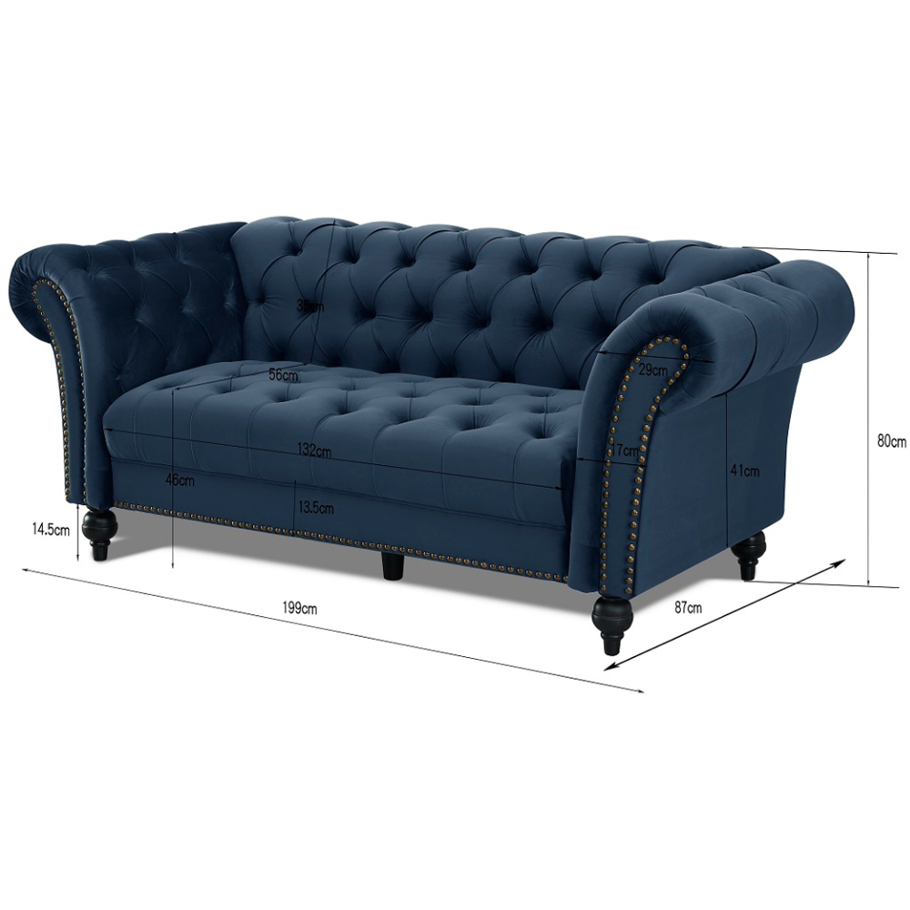Transform your living room with a Home Detail Mayfair 3 Seater Midnight Blue Velvet Curved Sofa. This sofa is upholstered using soft velvet fabric with comfortable seating and a firm backrest for better comfort. This handcrafted sofa has a high-quality construction with sturdy feet for stability and support. One of the best ways to keep this sofa looking great is to vacuum it once a week. Use a low setting and the upholstery attachment of your vacuum cleaner to avoid any damage to the fabric. Just make sure to vacuum in the direction of the pile. Alternatively, a soft hand brush can fluff the fibres back up and keep the fabric colour intact. Fabric appearance may vary due to differences in lighting and screen resolution on various devices. Faux leather should be wiped clean with a damp cloth to remove any stains. Please note: This sofa is a large item, so please ensure it will fit through any access doors and walkways up to and within your property. It requires a minimum door width of 80cm.