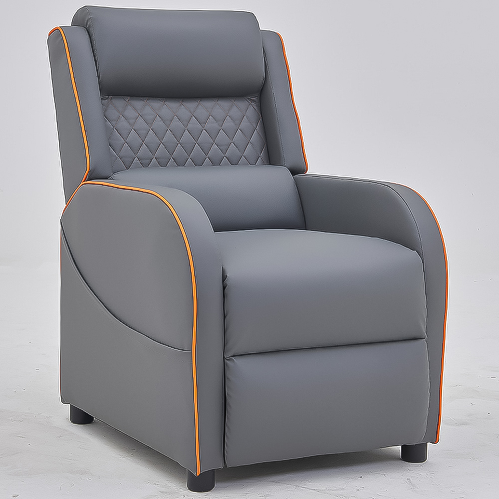 Go for the ultimate gaming throne with the Home Detail Nova Grey and Orange Manual Gaming Recliner Chair. This faux leather gaming chair is designed for maximum comfort and support, featuring extra lumbar and neck support for those long gaming sessions. The manual push-back recliner makes it easy to kick back and relax – just lean back using your body weight, and the footrest will come up. When you're ready to sit up again, simply push yourself forward, and the chair will return to its original position. With its sleek racer design and striking contrast piping, it's sure to make a statement in any gaming setup. Plus, the chair comes with convenient side pockets, perfect for keeping your remote, controller, and headset within reach at all times. Plus, it's UK certified with UKFR and FSC certifications.