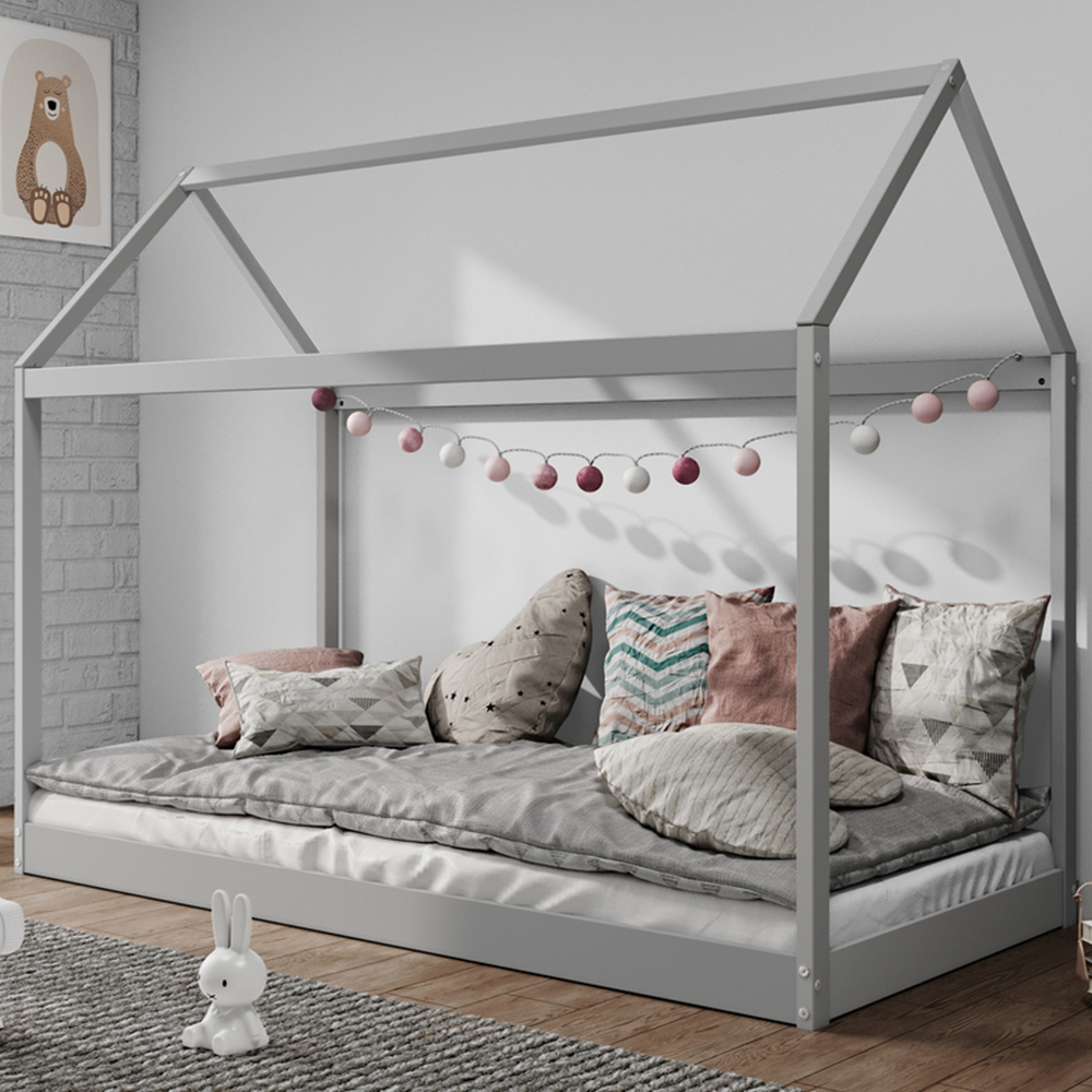 Upgrade your child's bedroom decor with this Home Detail Taylor Grey Wooden Kids House Bed. It's adorned with a house design to suit modern trends and flaunts a grey hue that adds a touch of charm to it. This bed features a Montessori-style low bed base to let children climb on and off the bed without needing any adult's help. It allows you to create independence at a young age, making it a perfect addition to your child's bedroom. Plus, it's all UK-certified with FSC. With this house bed, elevate your home's decor effortlessly.