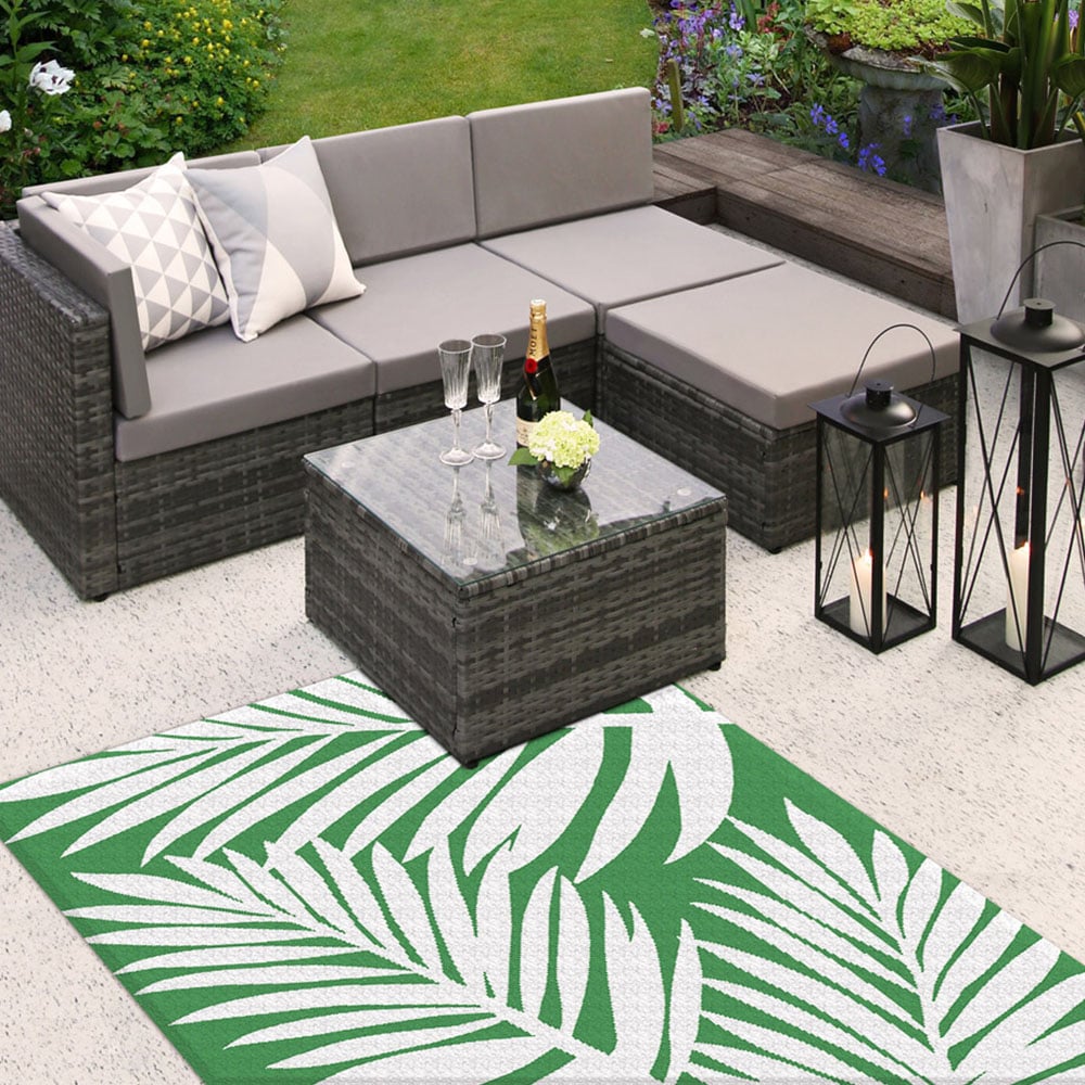 Introducing the outdoor rug, which is available in four different styles and is a perfect addition to your outdoor living space. Designed with a range of impressive features, this rug combines functionality, durability, and style to enhance your outdoor decor. This rug was created with a number of outstanding qualities and blends style, usefulness, and durability to improve your outdoor decor. The large outdoor rug is meticulously crafted with a tubing weave composed of 100% polypropylene. The rug can resist the demands of outdoor use because of the material's remarkable durability and elegant appearance. This rug is made to last, regardless of the amount of foot traffic or exposure to the outdoors. It has never been simpler to clean up after an outdoor gathering. The Moon large outdoor rug is made to be stain and dirt-resistant. Any spills or accidents may be cleaned up easily, leaving your rug looking brand new. Bid adieu to difficult stains and welcome to simple care. When it comes to outdoor carpets, mildew and water damage are frequent worries. You can have peace of mind, though, with the Moon outdoor rug. The rug is made of a material that resists mildew and allows water to drain through quickly.