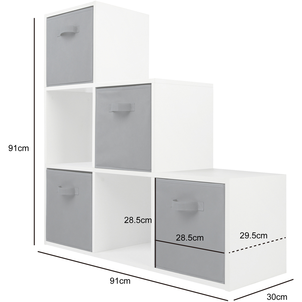 Organise your essentials stylishly with the Home Garden Direct Jane 123 Ladder Bookcase with Baskets. This super functional cube shelving unit is made from high-quality material, ensuring you get the best storage solution. Its sleek and simple design brings a bit of elegance to any space, showcasing six cube compartments that step down horizontally. Ideal for keeping books, kids' toys, or anything else organised, this bookcase is your go-to for a neat and tidy home.