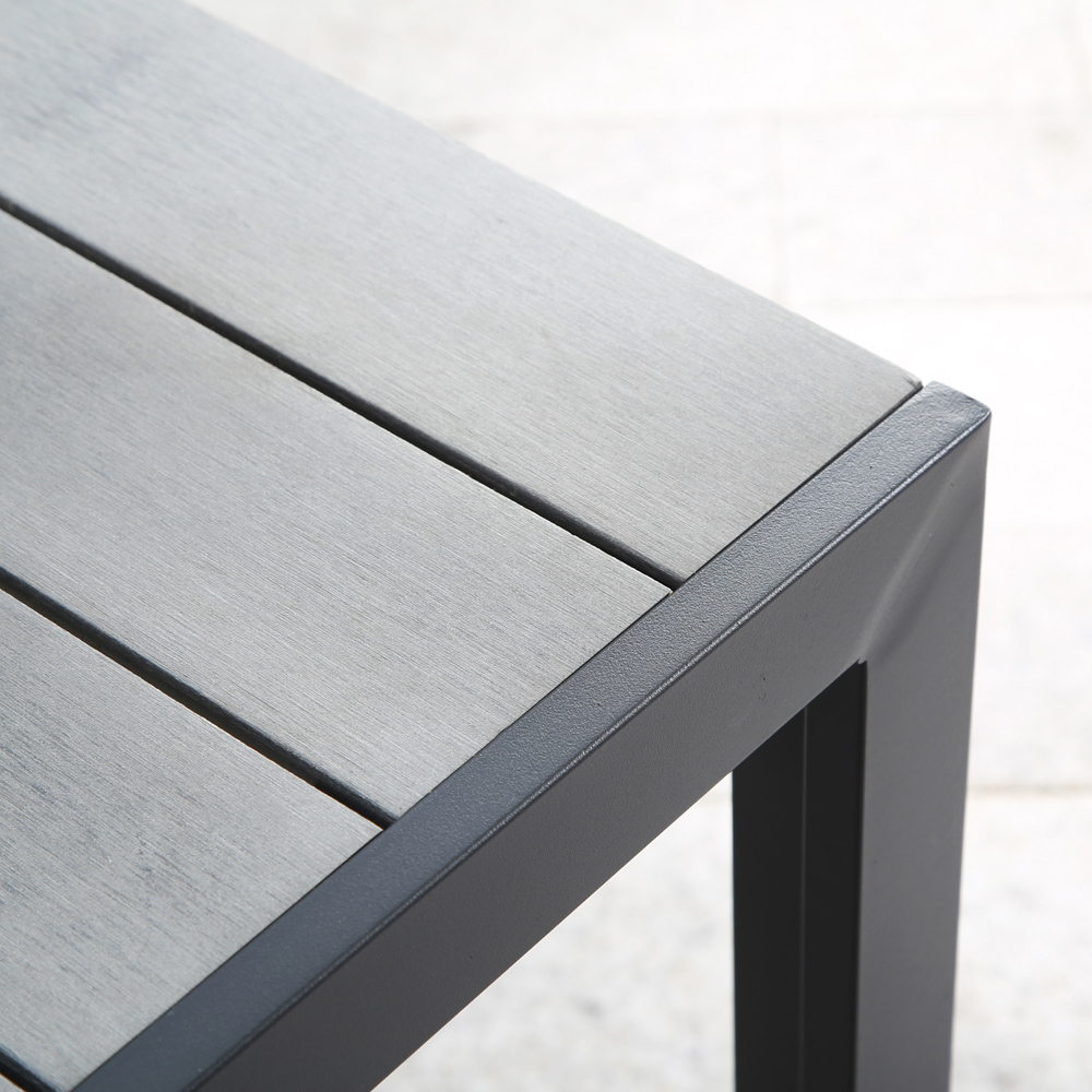 Transform your outdoor patio into a stylish dining oasis with our modern six-piece patio dining set. Featuring a sleek grey steel frame and artificial wood accents, this set offers a perfect blend of contemporary design and natural beauty. The spacious table comfortably seats six, making it perfect for family gatherings or entertaining guests. This table and six chairs set include comfortable dining chairs made with durable materials to withstand the elements. Whether you're enjoying a casual weeknight dinner or hosting a weekend barbecue, this patio dining set is sure to elevate your outdoor dining experience.