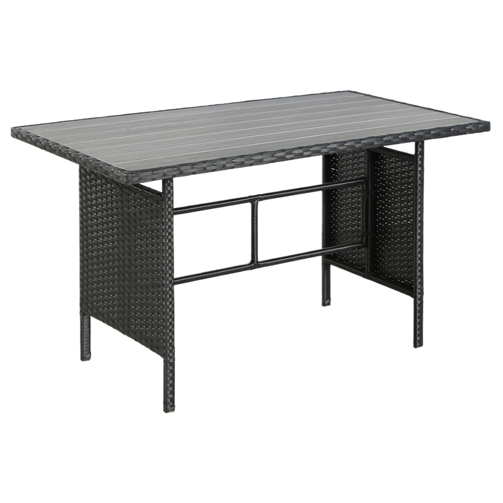 Make it perfect for dining and relaxation in your outdoor space with the Home Garden Direct Thalia eight-seater Black Rattan Corner Sofa Set. Seating up to eight people, this set combines modern aesthetics with durable materials, featuring a PE rattan weave, complemented by soft cushions for a contemporary yet timeless look. The dining table offers a choice of 5mm black tempered glass for a sleek, polished feel or a grey plywood top for a natural, rustic touch. Built with a sturdy steel frame and weather-resistant polyester cushions, this set ensures long-lasting support and easy maintenance, making it a stylish and functional centrepiece for any garden or patio.
