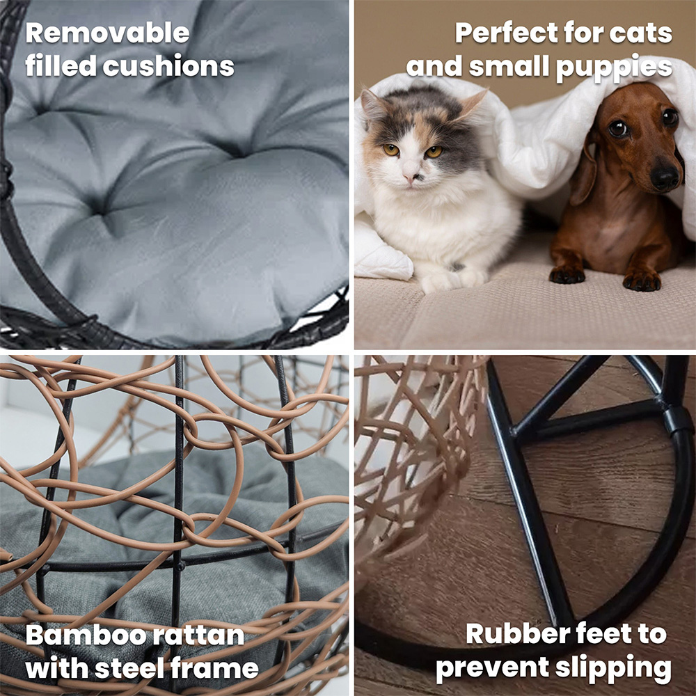 Give your furry friend unparalleled comfort with this Home republic Miami Black Egg Pet Chair with Cushion. Perfect for outdoor settings, this pet bed is designed with both relaxation and durability in mind. It features a chic rattan exterior and a plush cushion, offering maximum comfort and a stylish look. The sturdy hanging stand ensures a secure and enjoyable lounging experience under the summer sun. Weather-resistant materials protect the chair from the elements, while the soothing sway motion allows pets to relish the gentle breeze.