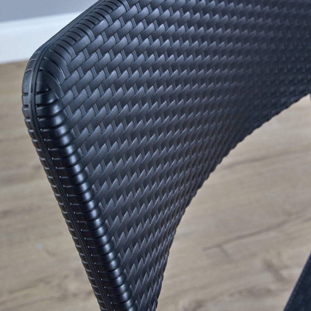 The new stylish 3-piece Outdoor Patio Folding Bistro Set features a sleek black design, this set includes an HDPE tabletop, seats and backs with a thickness of 3 cm, complemented by powder-coated steel cross-braced tubes for added strength. This patio set can be effortlessly folded and set aside when not in use, maximizing your space. Table Size = (Diam) 61cm (H) 74cm. Chair Size = 54cm (D) 45.5cm (H) 82cm.