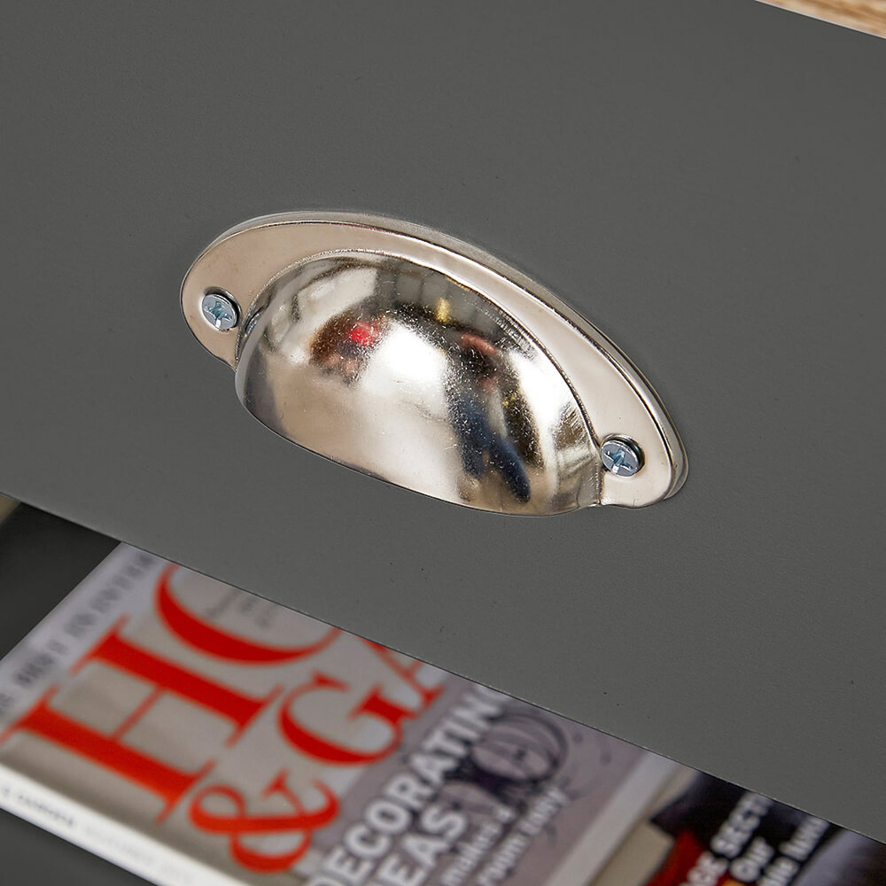 This 2-drawer Coffee Table is slightly higher than usual, but then it does give you more for your money as it has a contrast Sonoma oak top, plus 2 storage drawers and an undershelf built-in as well. It suits modern décors thanks to its graphite finish and goes well next to an armchair or settee. Use it with a lamp on, a vase of flowers or a pot plant, books and magazines – or just a convenient place for TV dinners and to rest your drinks, snacks, remote controls and mobile. Size = (W) 90m (D) 58cm (H) 45cm.